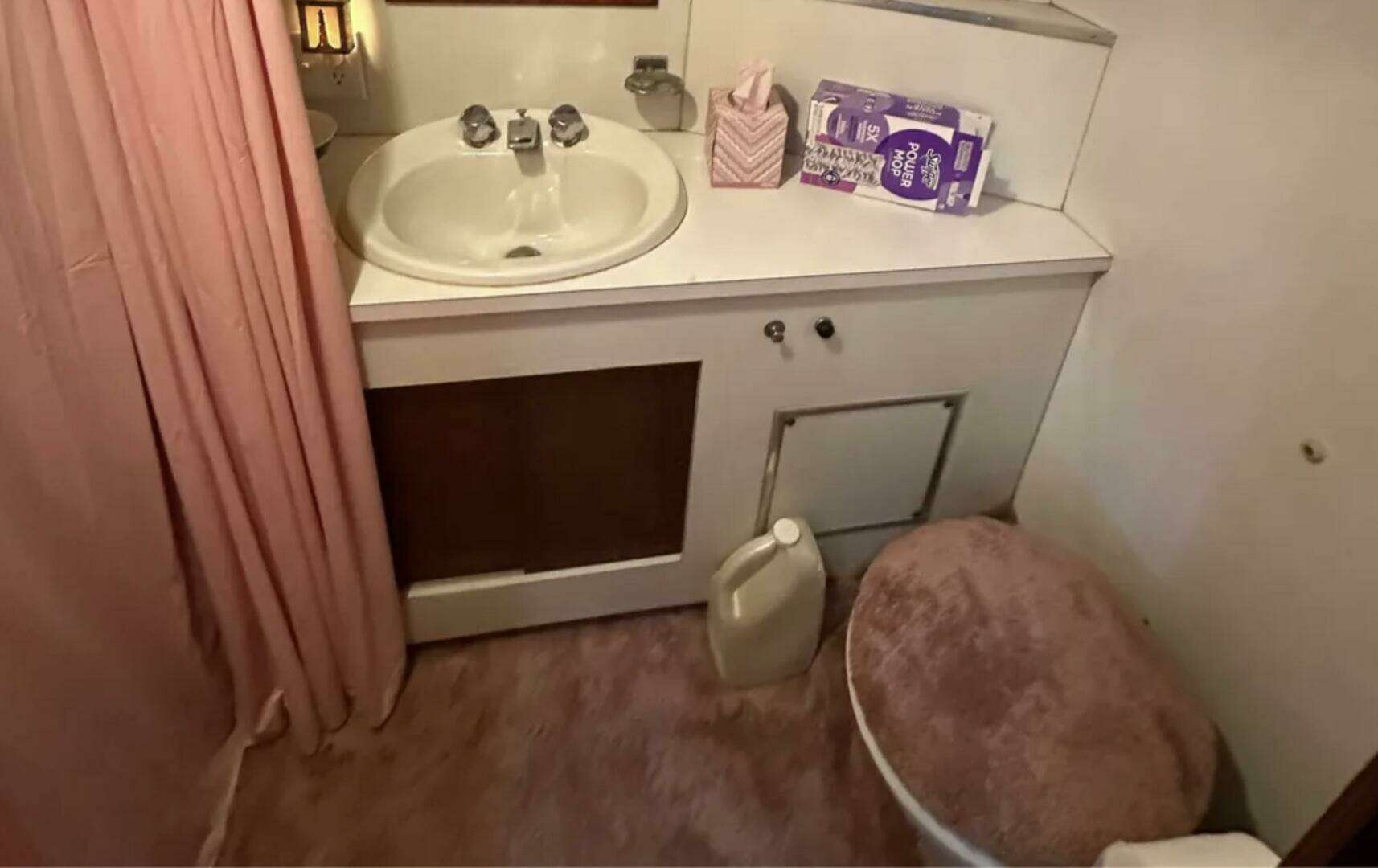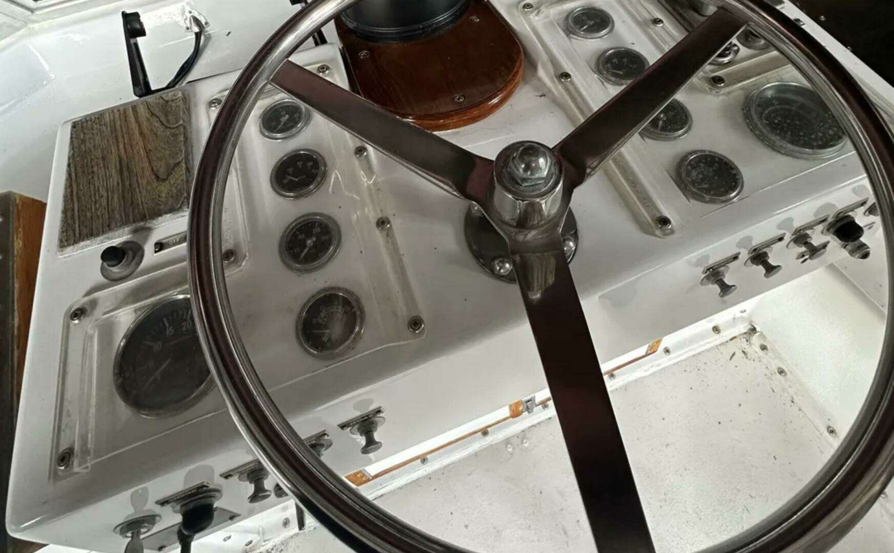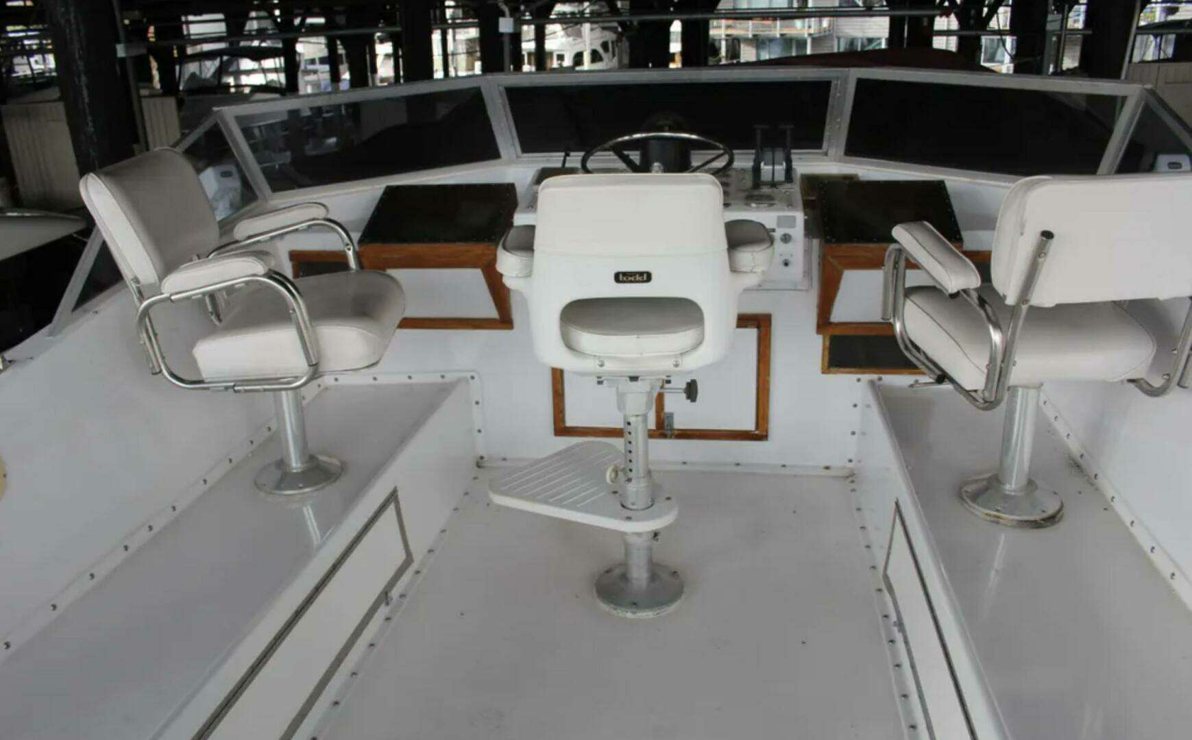 has interior carpeting, couch and 2 seating chairs. perfect for entertaining guests or visiting with family. With an interior helm station for when the weather gets bad this older. boat has it all.