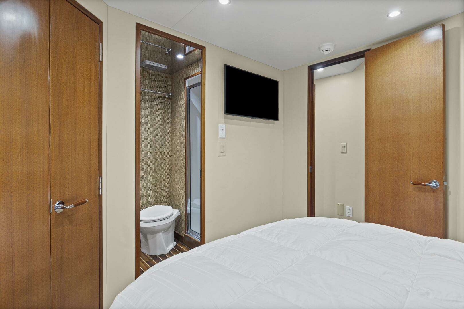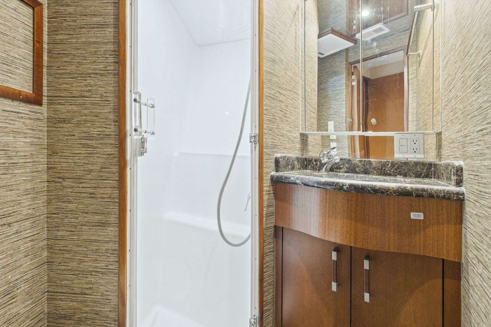 Beyond its impressive performance, this vessel offers four spacious staterooms and three well-appointed heads, providing comfortable accommodations for extended trips with family, friends, or crew. The interior is elegantly finished with custom woodwork, granite surfaces, and high-end amenities including surround sound, flat-screen TVs, and air conditioning throughout.