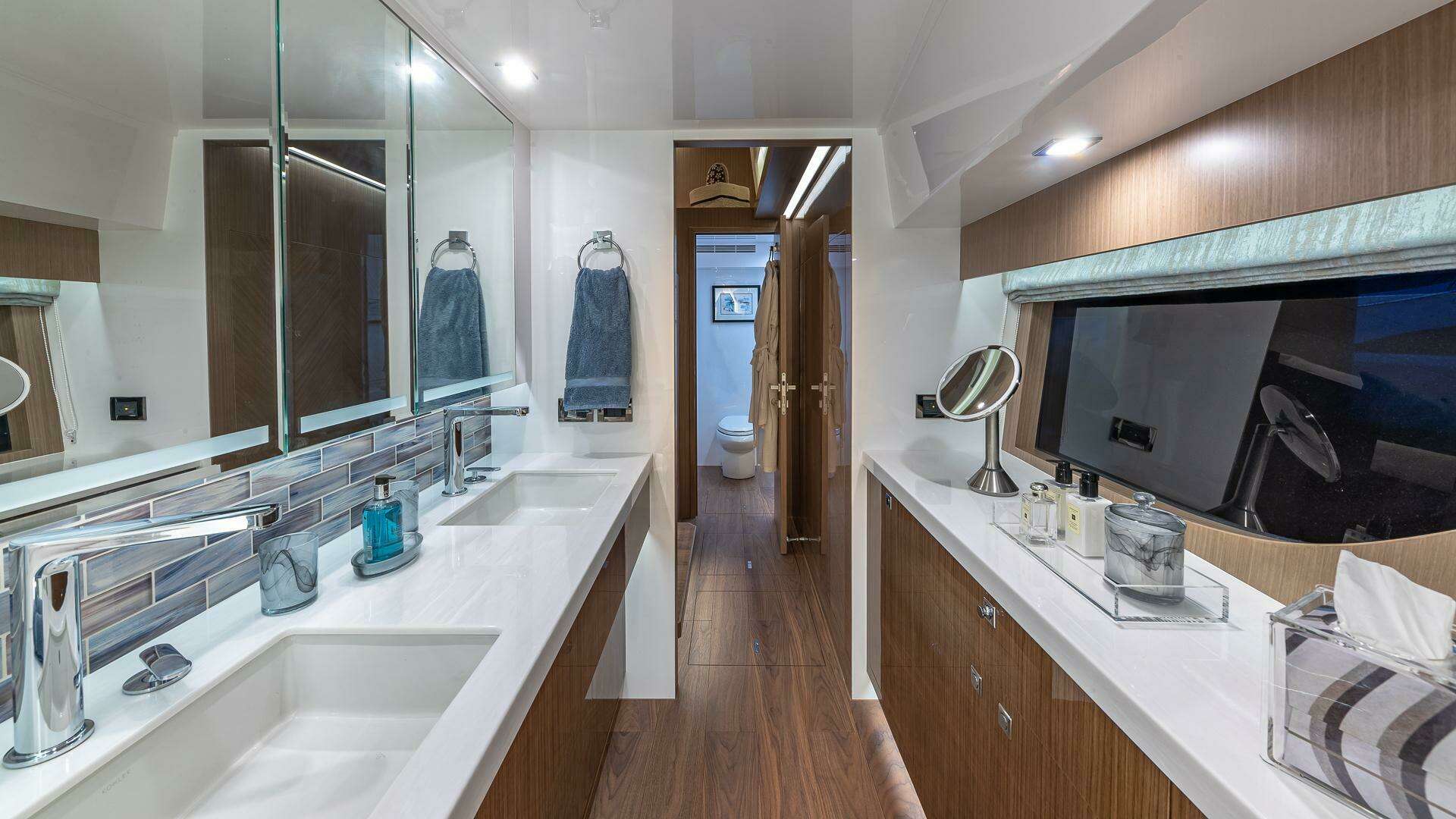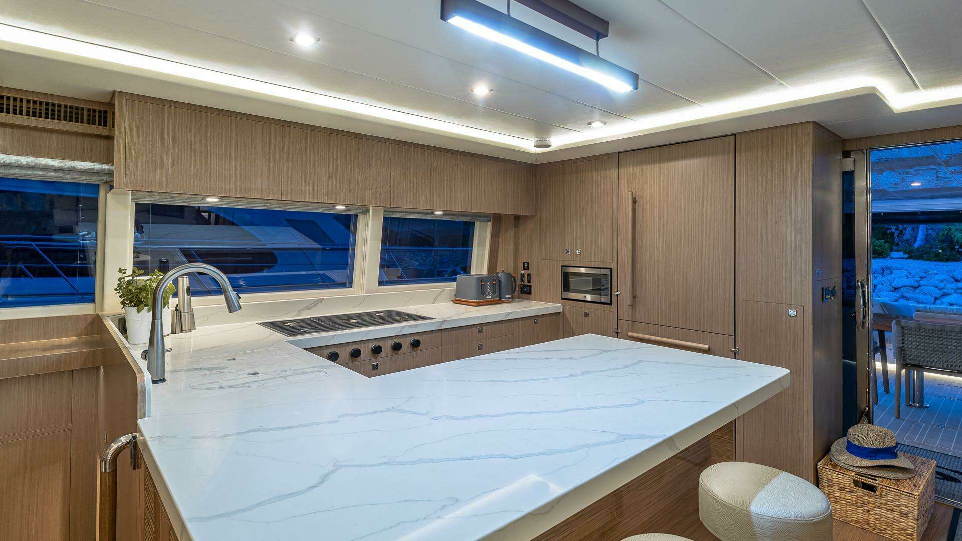 This Horizon PC60 "Oasis" is an amazing opportunity to step into a ready-to-cruise yacht that can be just that, a true Oasis. This on-deck master stateroom boasts a 4 cabin-4 head layout with a semi-open flybridge allowing for open-air cruising or comfortable air-conditioned voyages. With its 24'6 beam and sub 5-foot draft, this powercat is ideal for island hopping and blue water cruising. Powered by MAN i6 800Hp motors, you still have plenty of power to cruise at 20 knots, with a top speed of 25. If you prefer to take it slow, then you can maximize the 1,350 gallon fuel tank at 8 knots to reach over 1,300 NM of range. Whether you are a weekend boater, or a full time live-aboard, this Horizon PC allows you to enjoy the water in any way you like.
