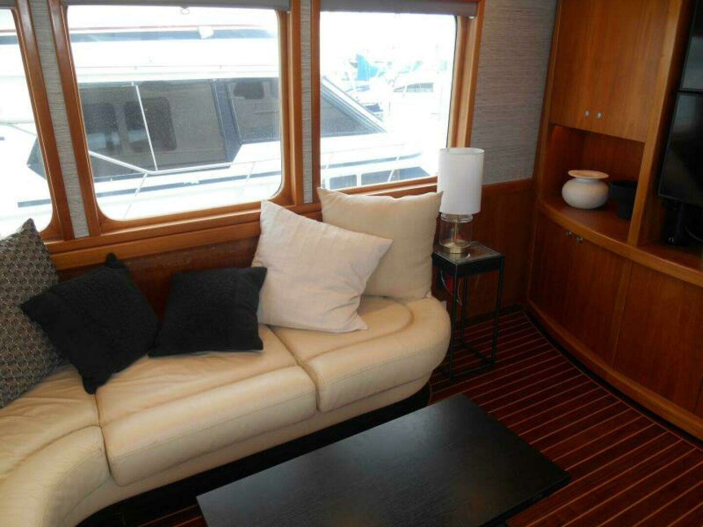 Upon entering from the aft deck, the first impression is of the open and spacious feeling one gets from the large windows trimmed in wood framing. The inviting rich leather sofas located port / starboard providing a comfortable relaxing environment for entertaining. Forward end of the salon is the rich Brazilian wood entertainment center.