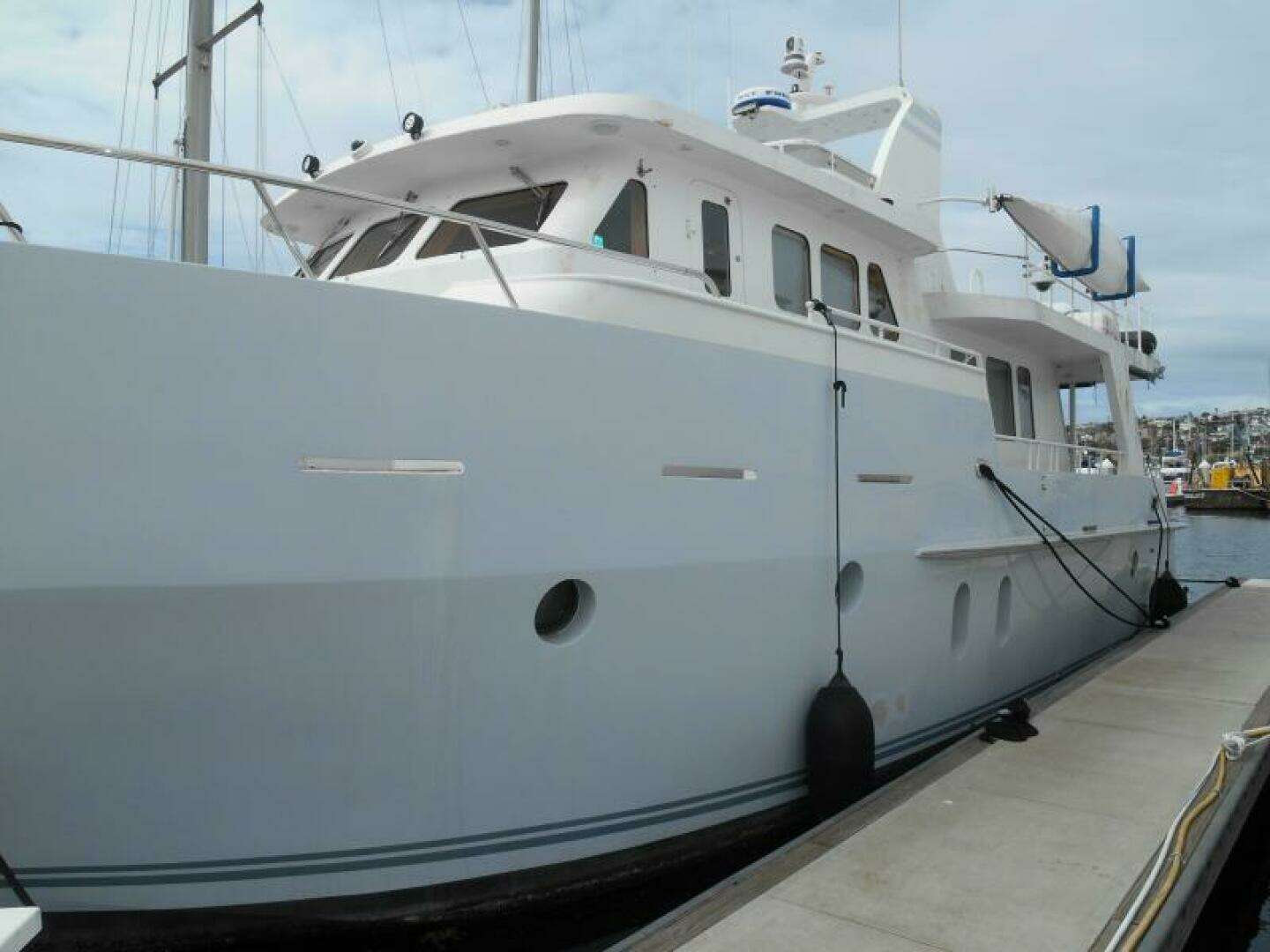 “Suspense” is a vessel with luxurious appointments not found in production-built vessels. With her full-width master stateroom, en-suit head, 2 guest stateroom with shared head. Salon with built-in sofas, Brazilian hardwood cabinetry, large window creates a serene and comfortable atmosphere. Moving forward from the salon is the well-appointed galley making meal prep easy, moving forward is the Pilothouse and stairs leading down to the main living quarters.