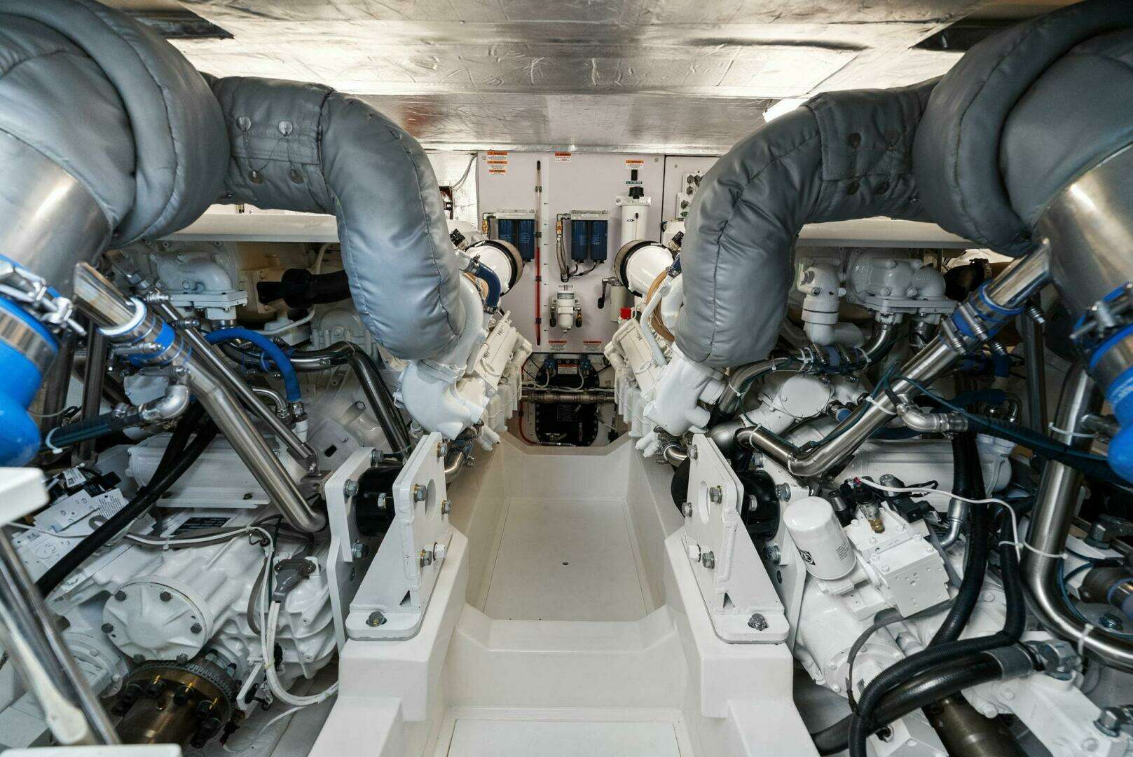 “Good Decisions” began life as a highly customized vessel for an avid boat owner who carefully selected every option, including a distinctive custom painted color scheme. Fitted with the largest engines available for this model — Scania DI 16 1,150 HP — she delivers commanding performance with effortless ease.