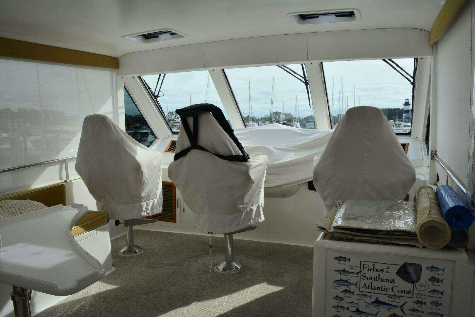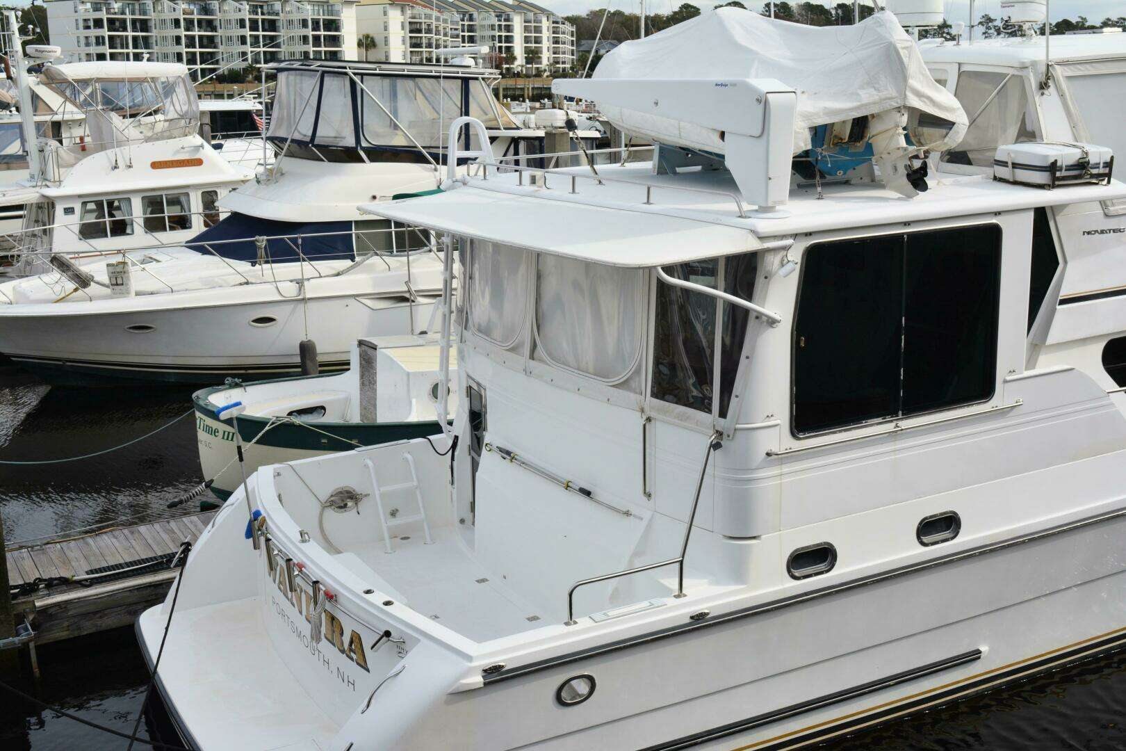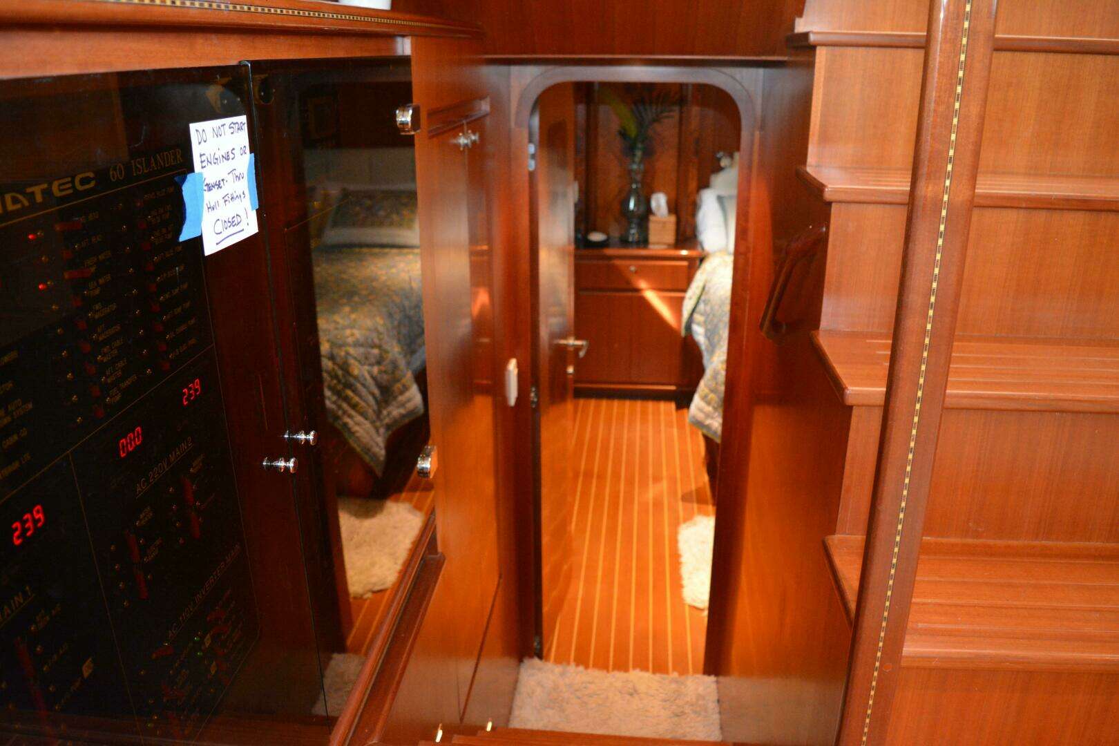 The Novatec 60 Islander "Wandra" is an Aft Cabin Cockpit Motor Yacht with classic Aft-Cabin features that include a freshly redesigned Cockpit and Swim Platform, a large enclosed Aft Deck and an equally large enclosed Bridge Deck. Both Aft Deck and Bridge Deck are fully enclosed with fiberglass hard tops and hard windows. Both aft and Bridge decks have individual Reverse Cycle Heat and AC zones.