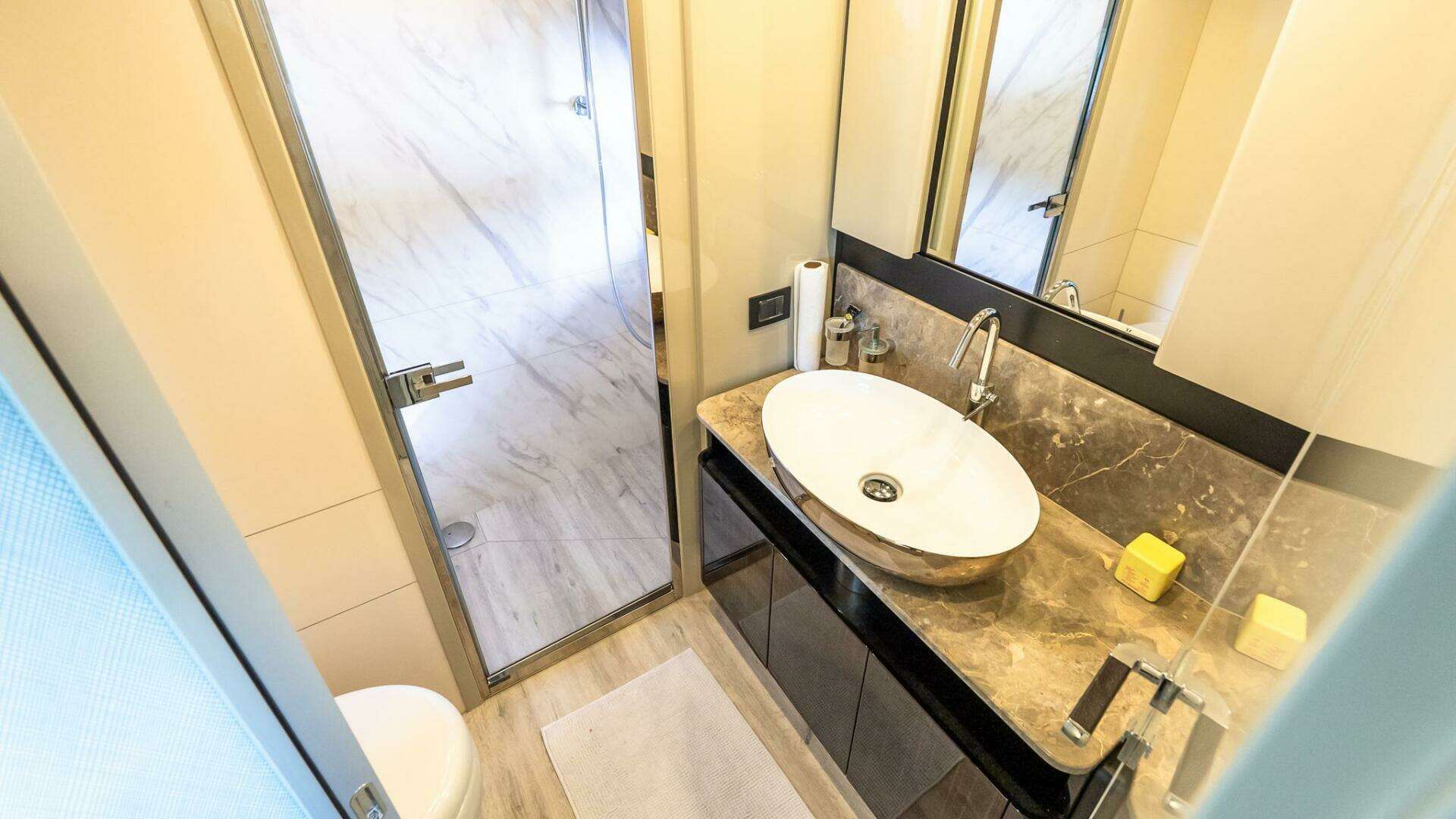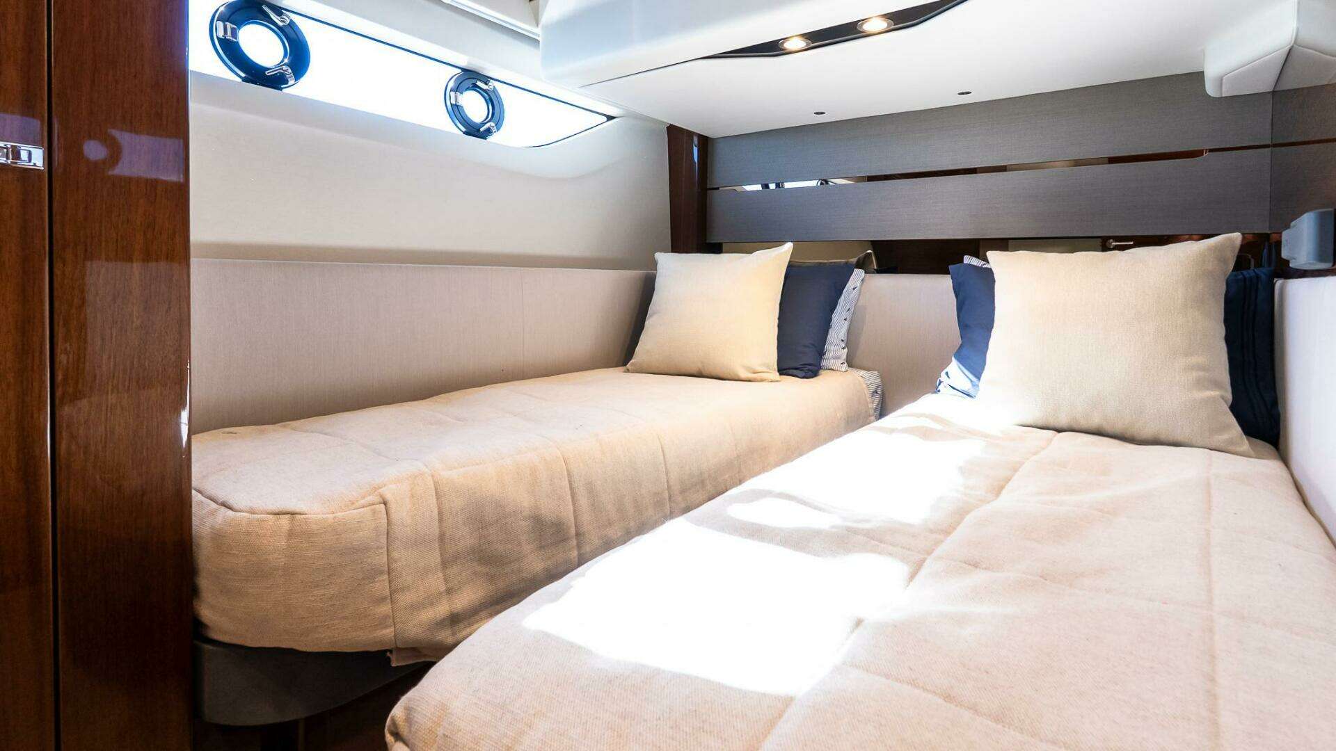 - Starboard cabin inboard berth with electrically powered sliding mechanism