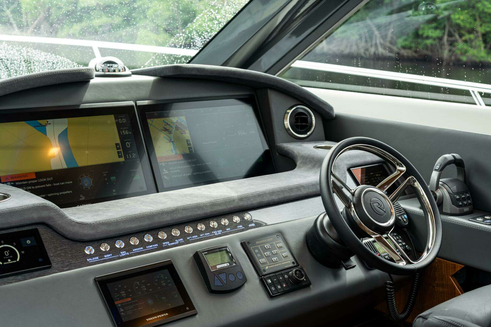 - Twin Volvo IPS 950 D11 Diesel (533kw/725hp) twin lever controls (helm) & 3 x joystick control to helm & cockpit (port & stbd side), DPS, Autopilot, ACP, 2 x 17'' Glass bridge MFD's & auto trim