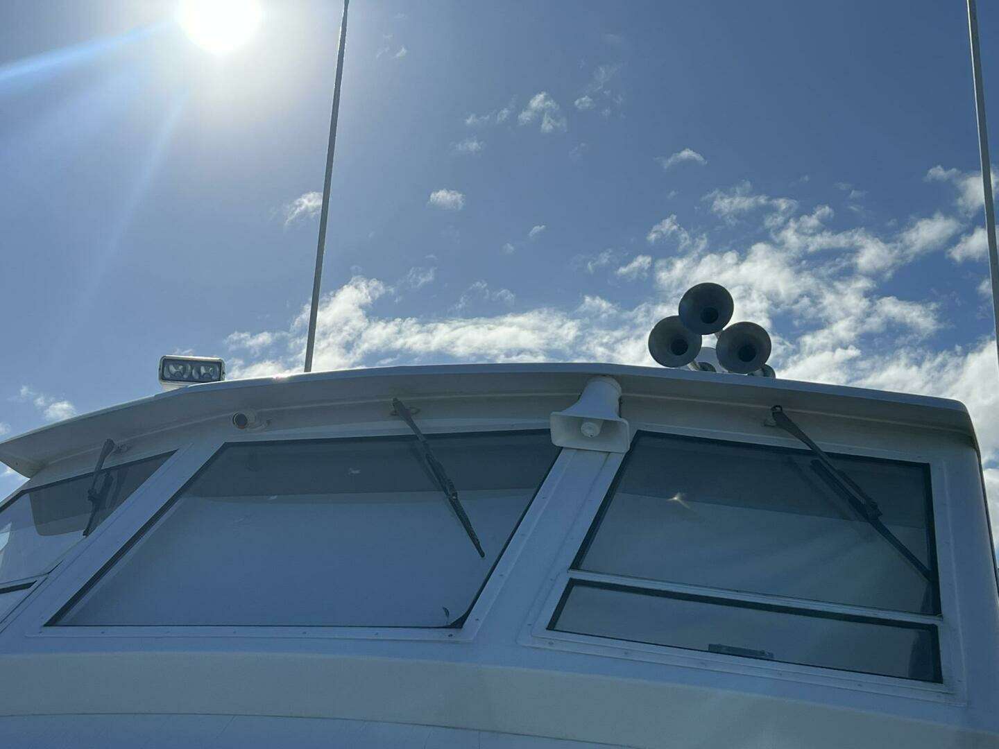 FLYBRIDGE GLASS PANES WITH SLIDING WINDOWS AND POWERED BROW VENTS