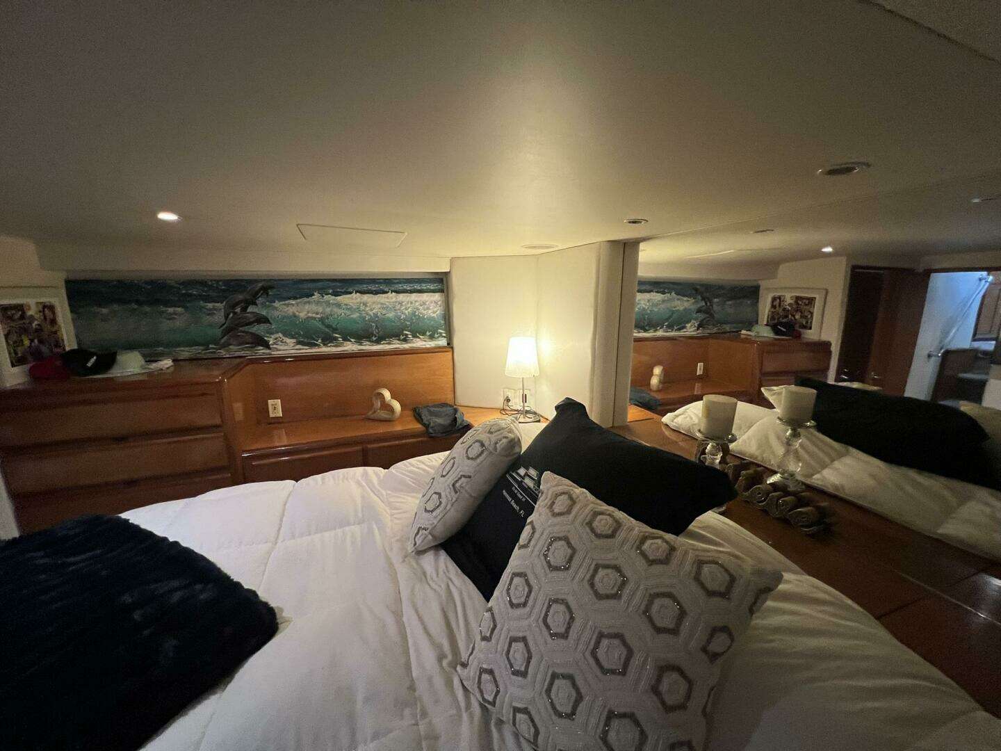 CENTER QUEEN BERTH WITH SPREAD AND ACCENT PILLOWS