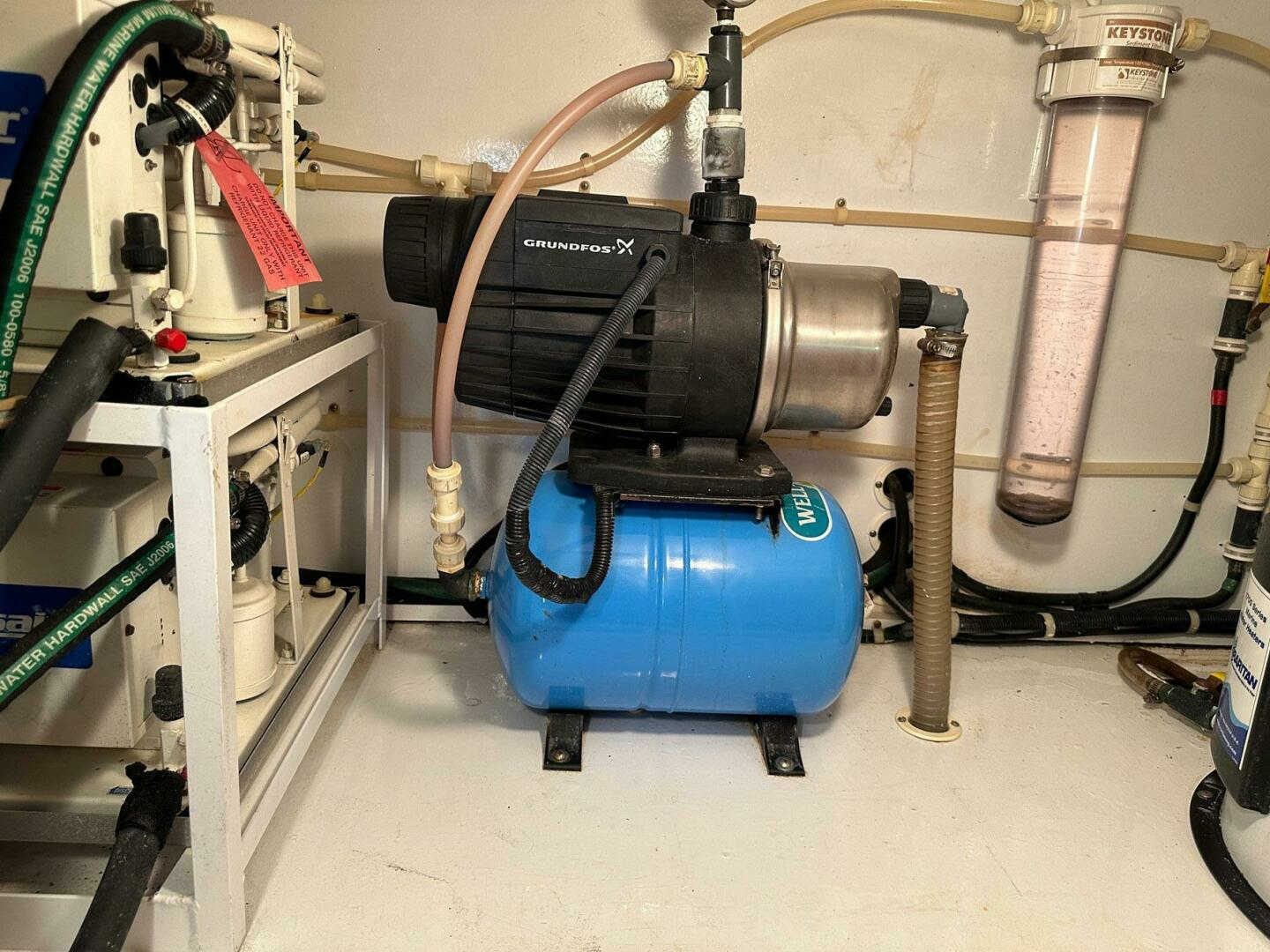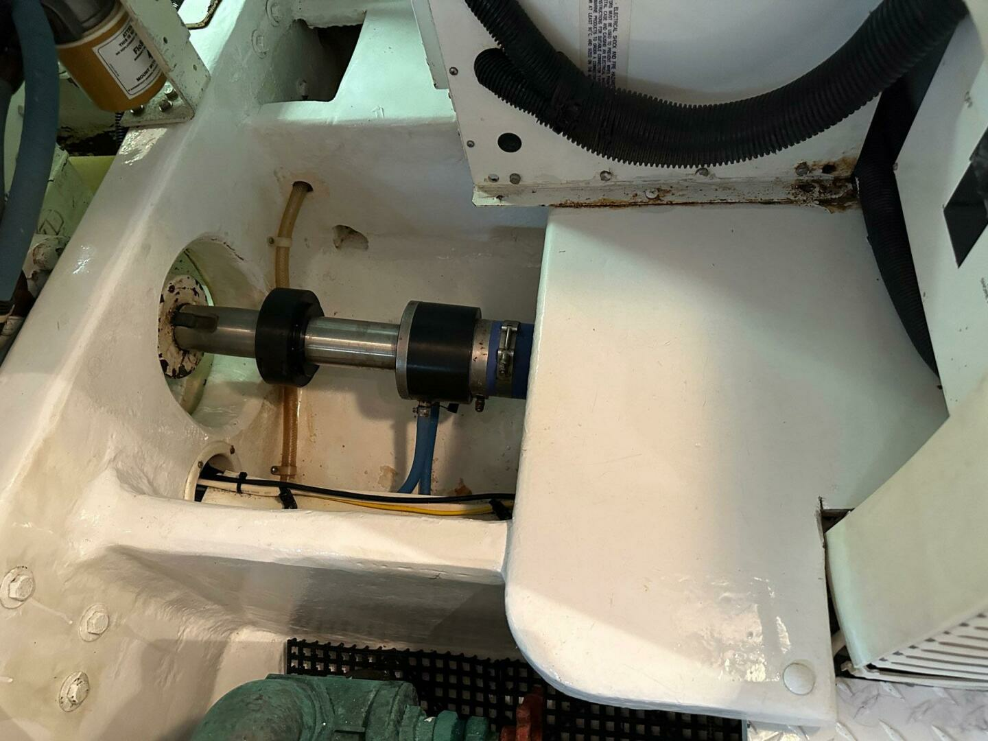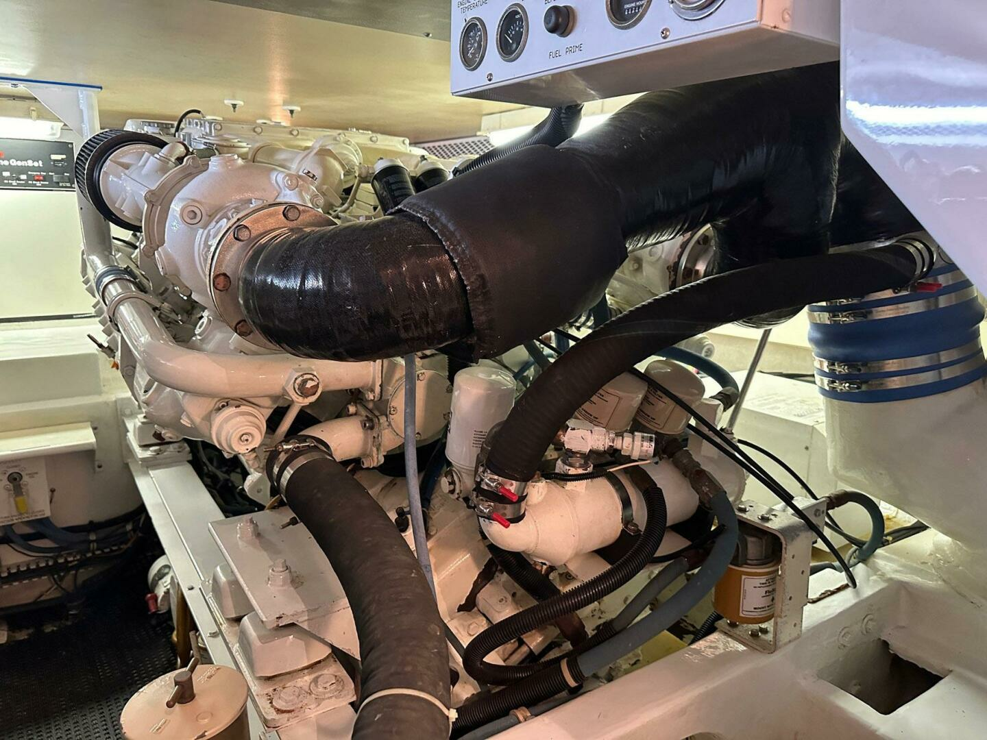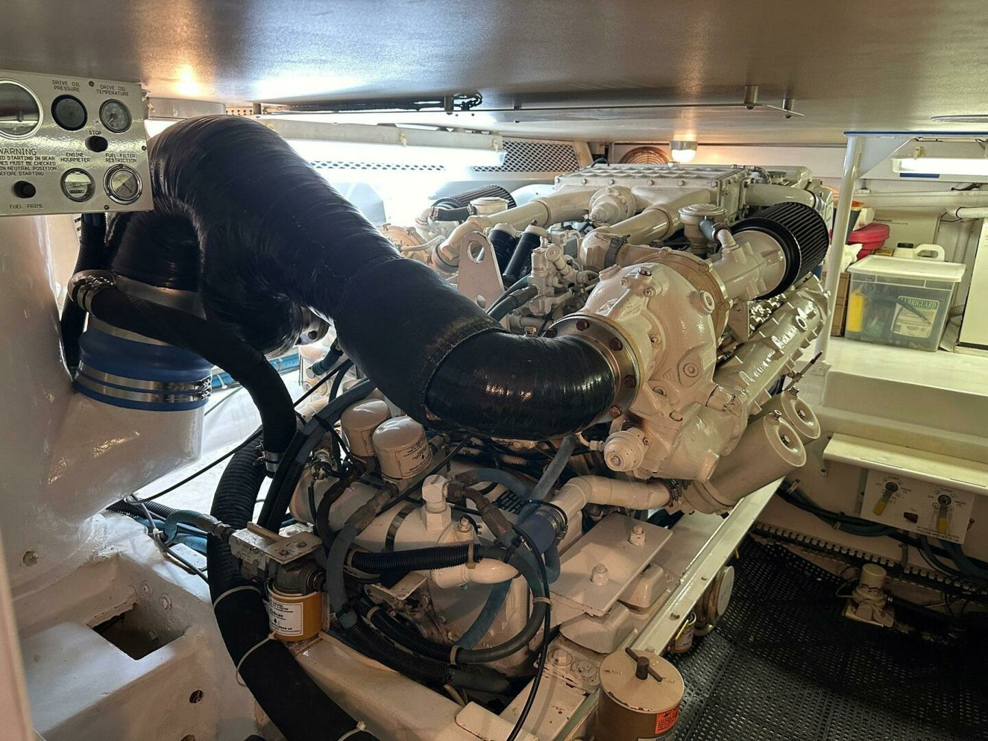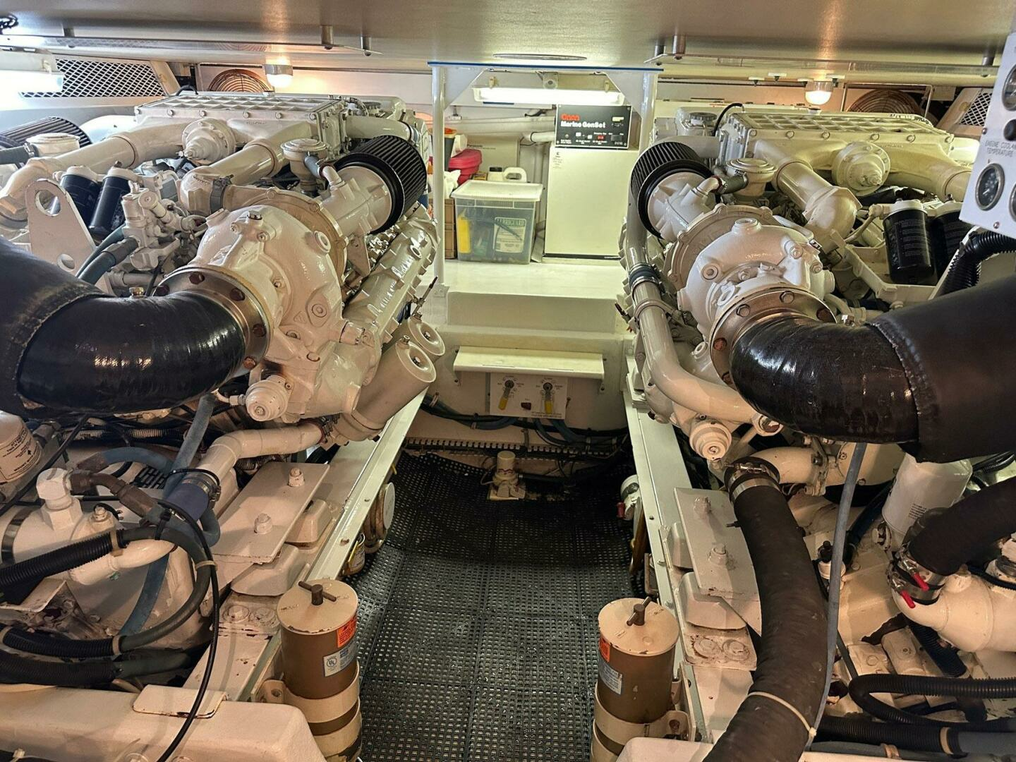 Walk-In engine room that has excellent headroom and good accessibility forward and outboard of engine.