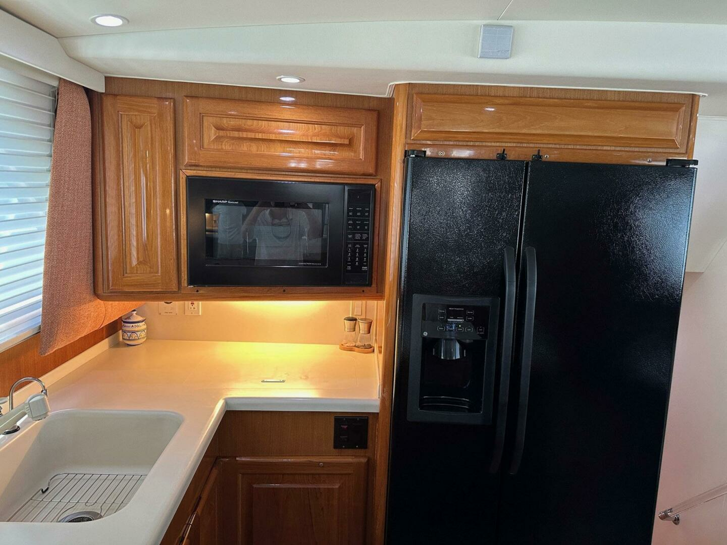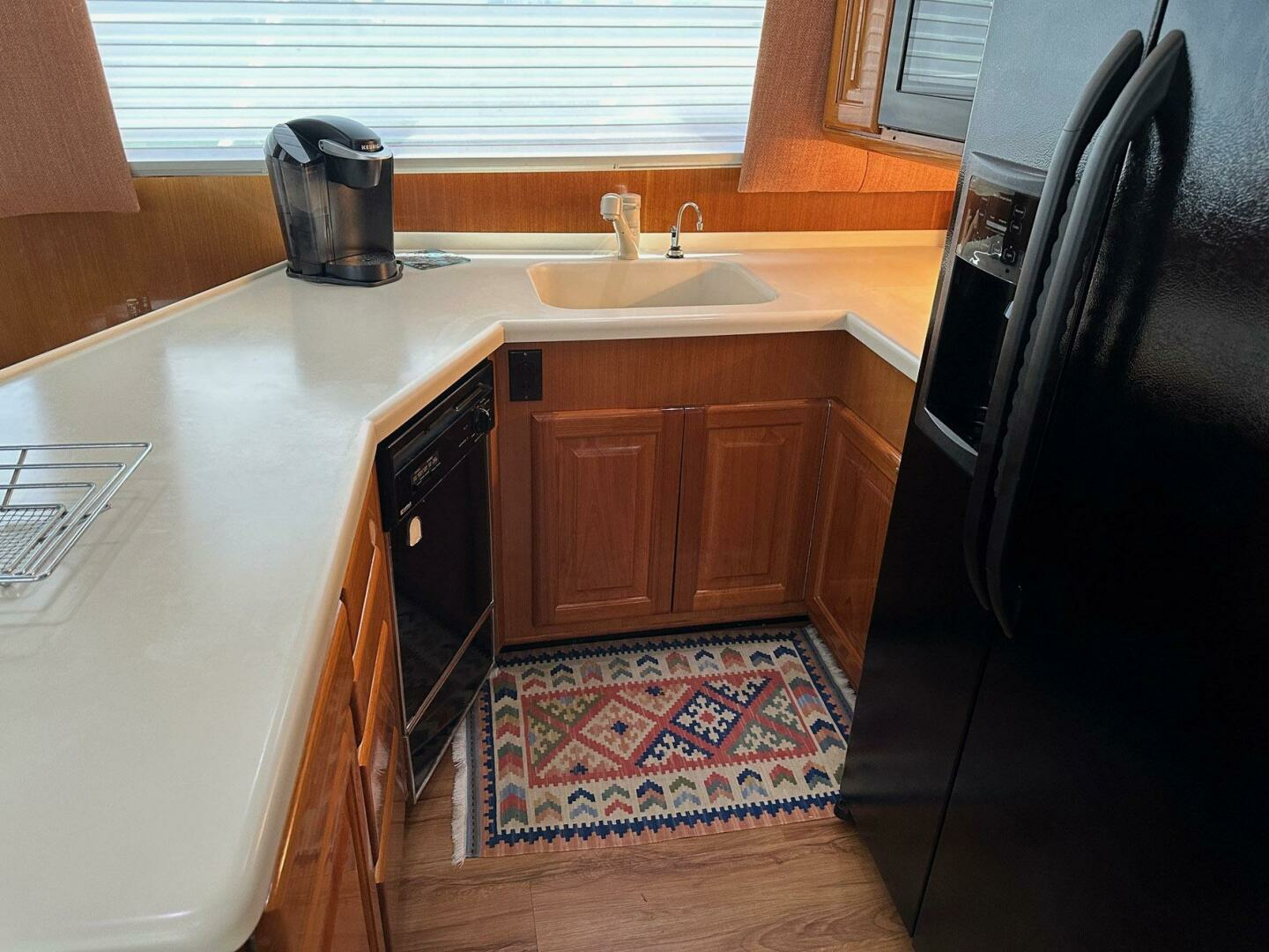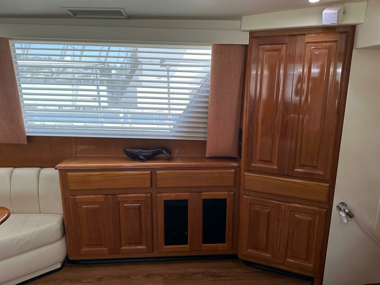 - Large galley window with light filtering sheer shades