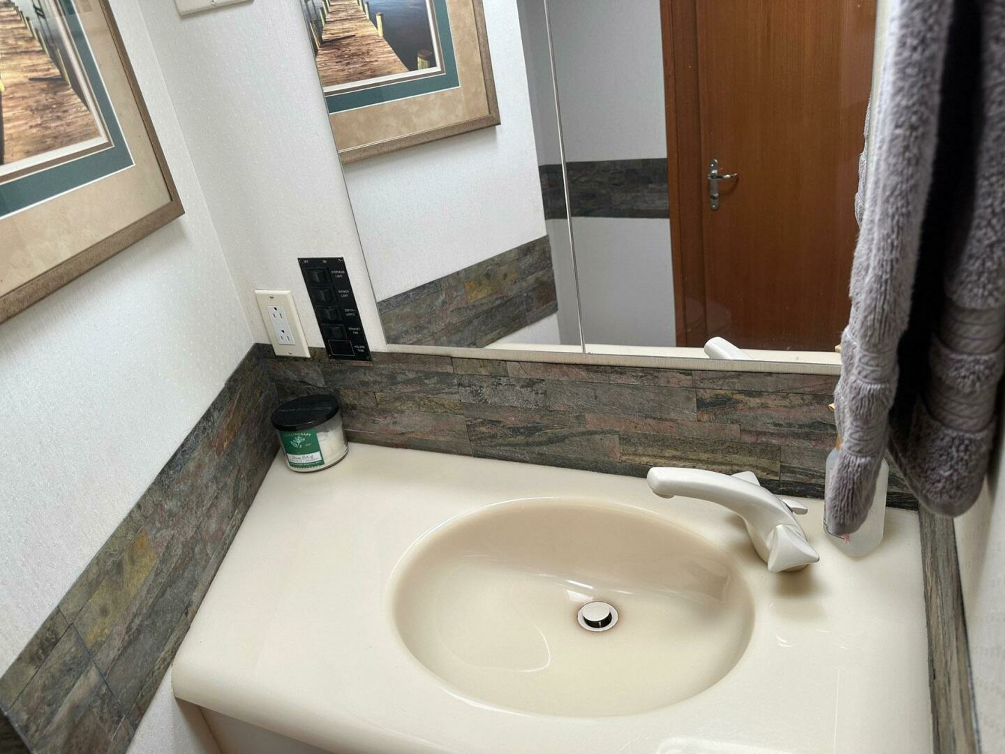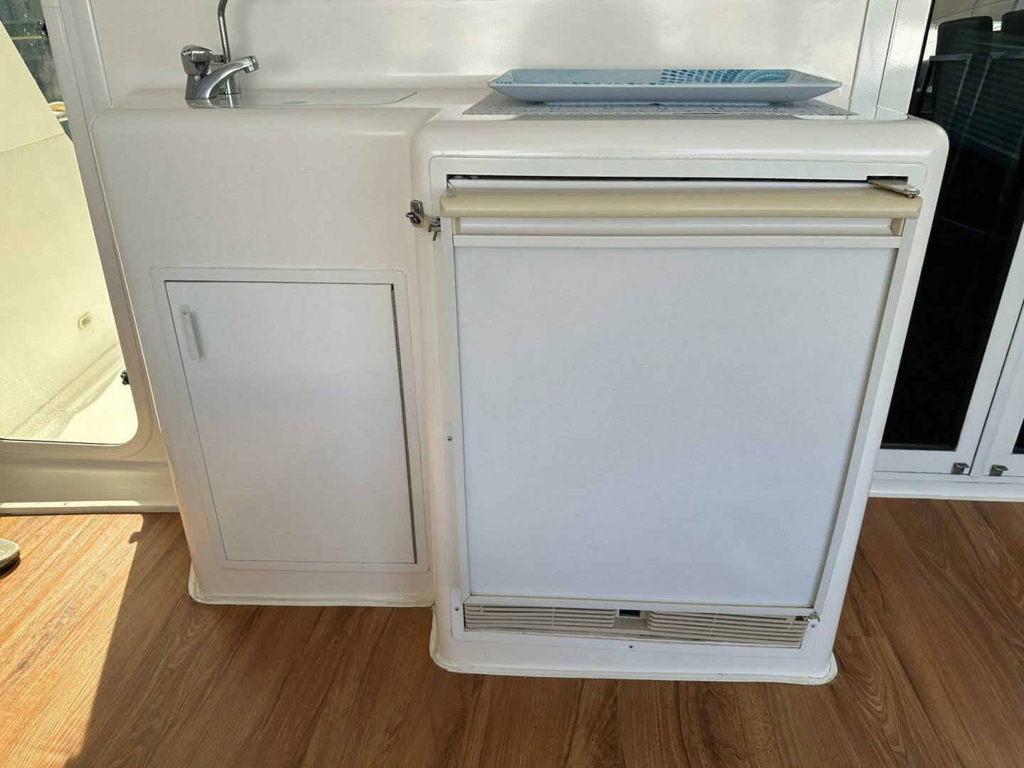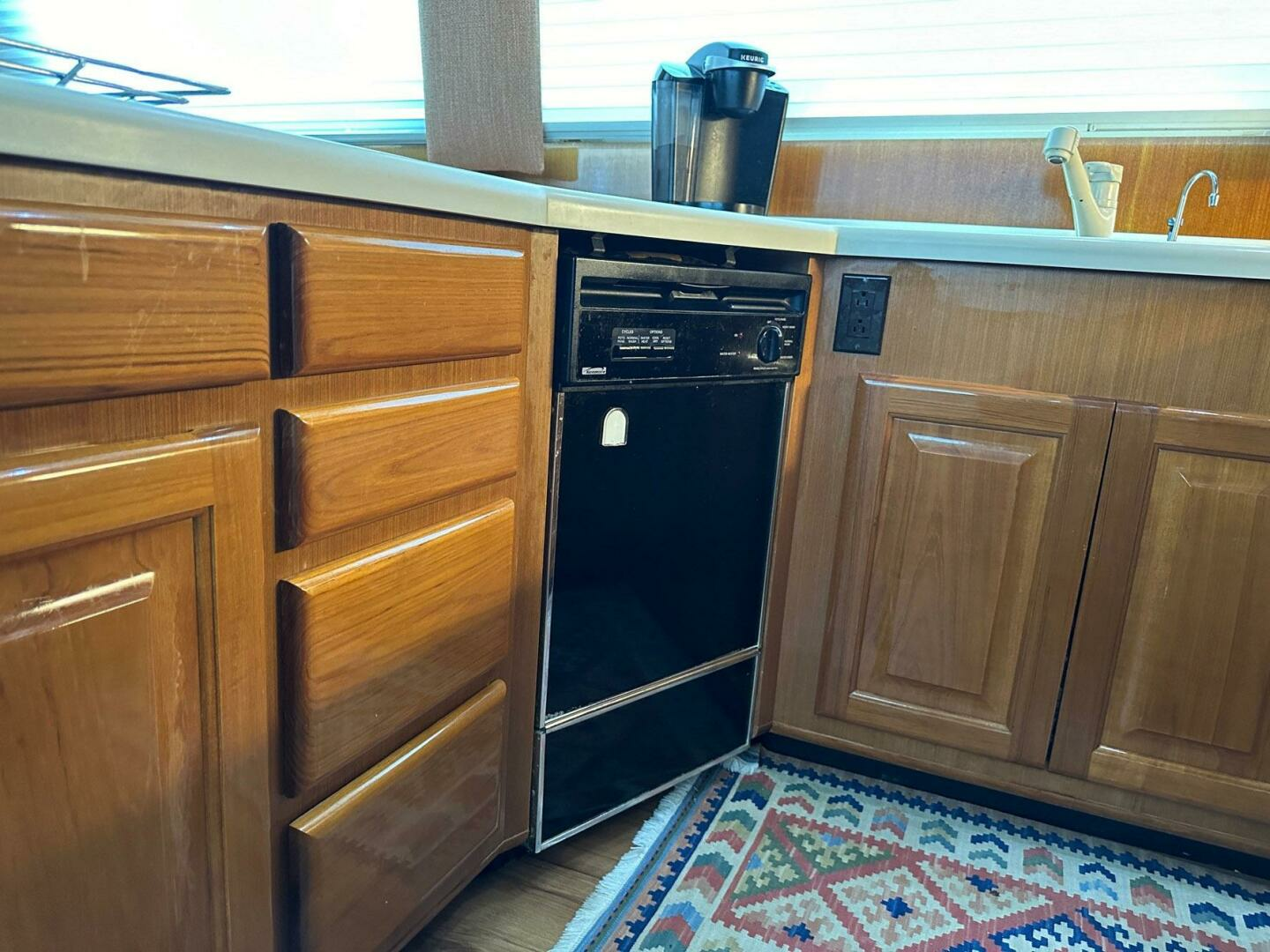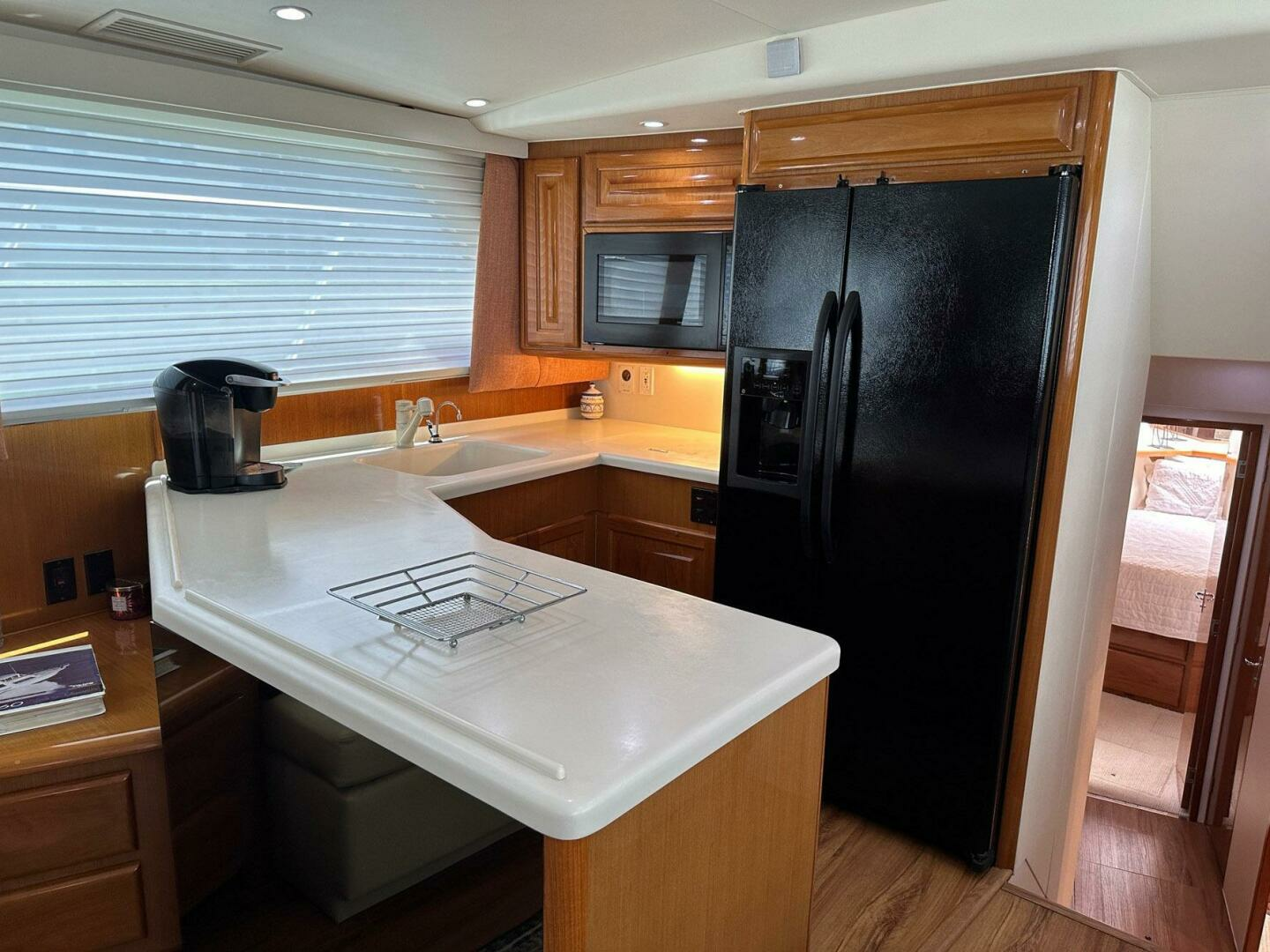 - Large galley window with light filtering sheer shades