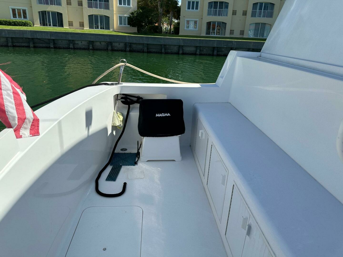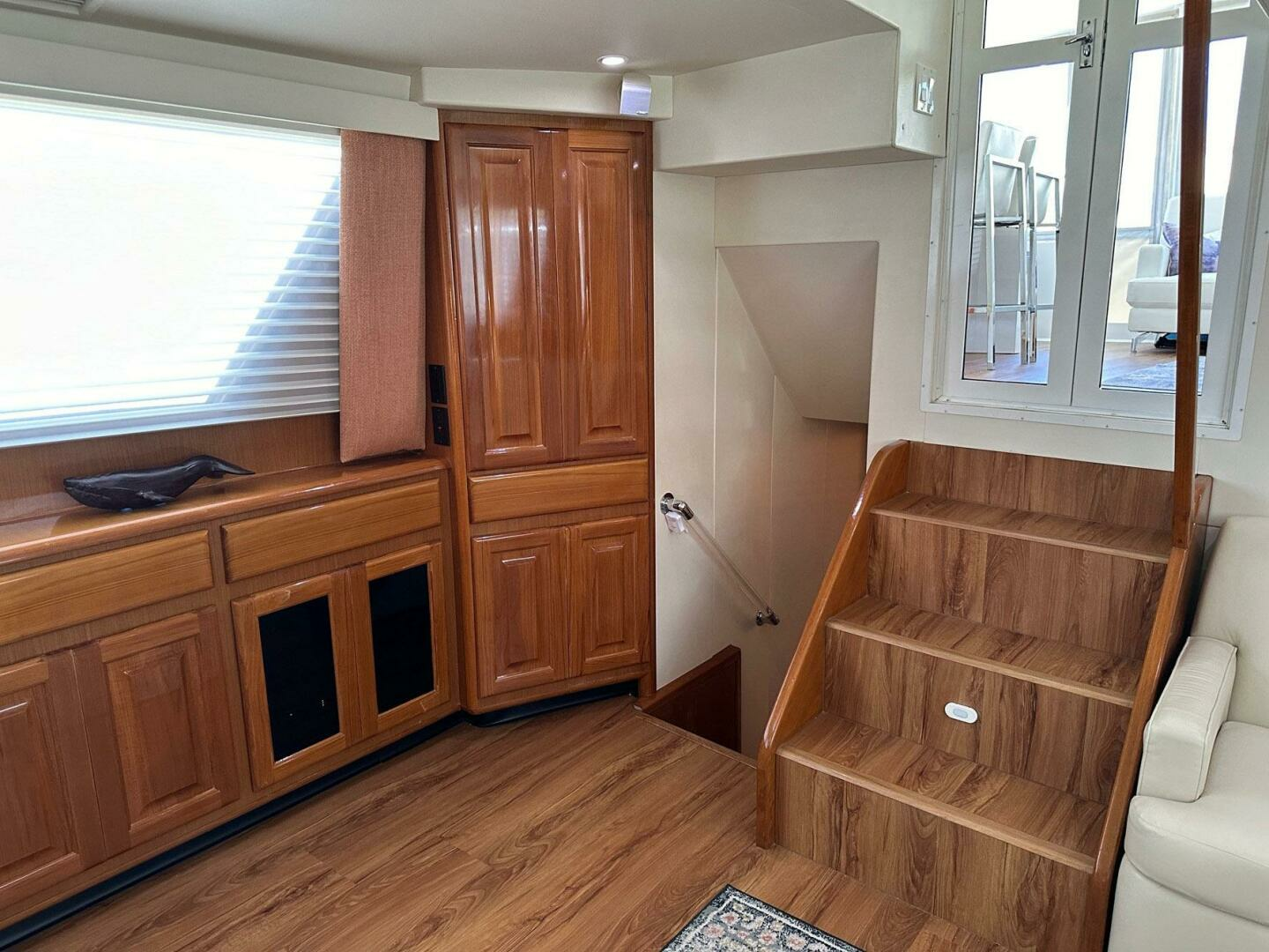 - Aft deck wet bar with refrigerator and storage above