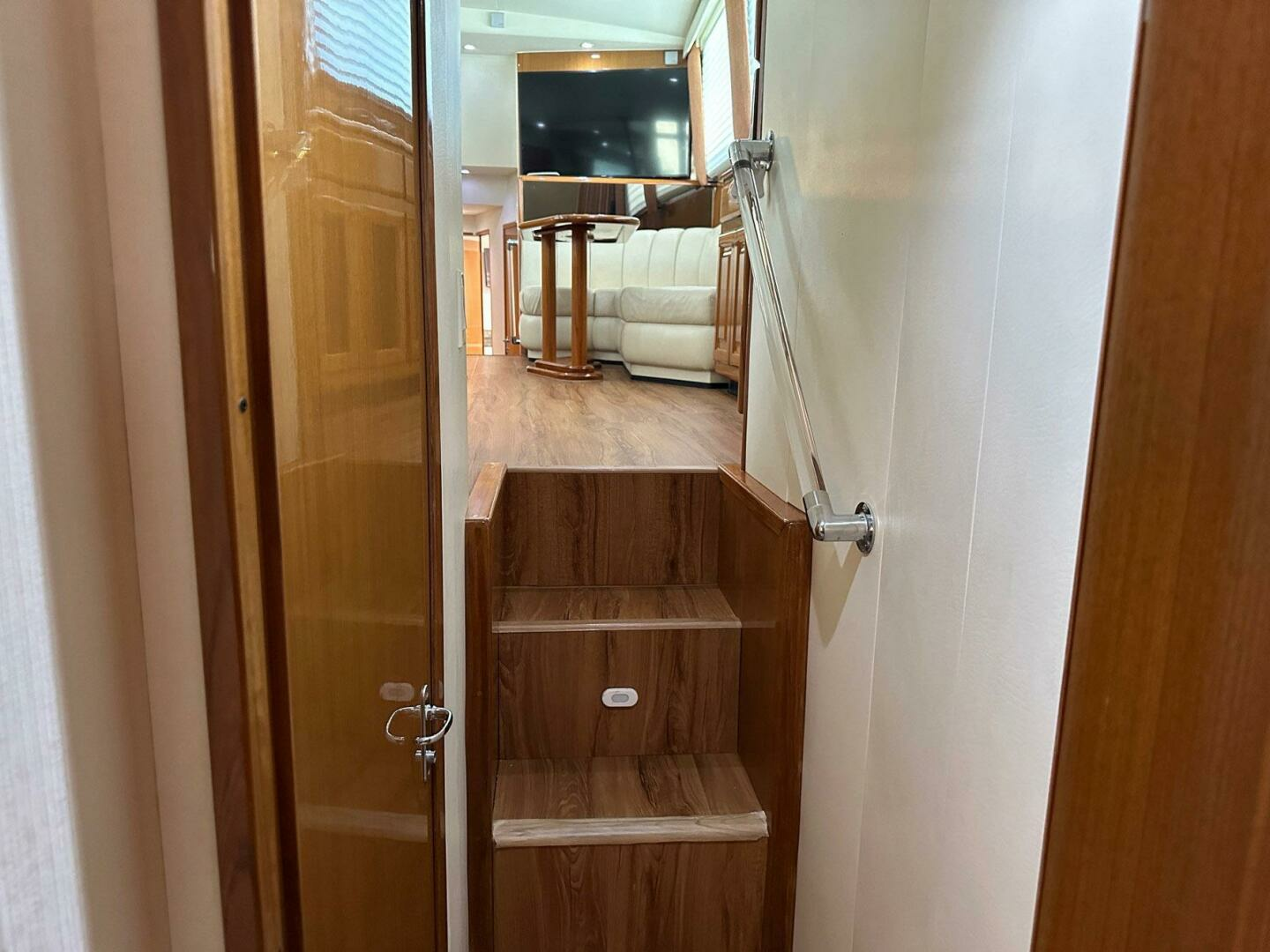 - Four steps up from cockpit to aft deck