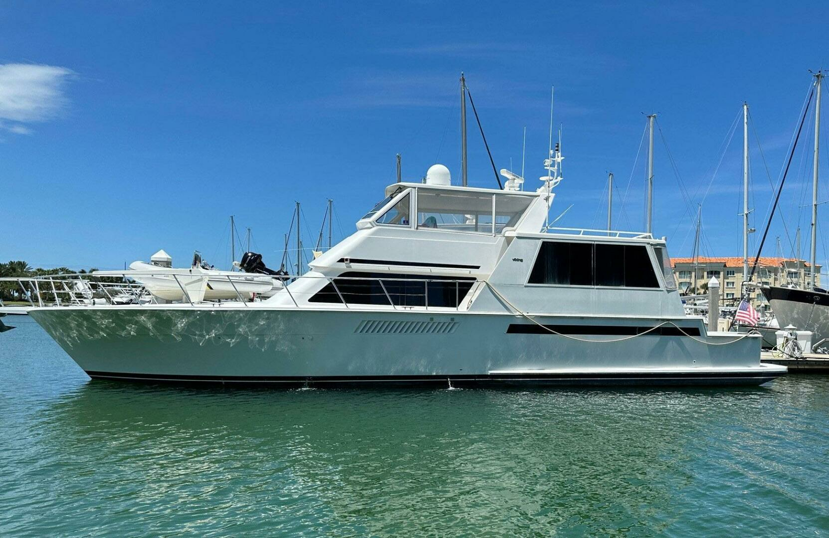 The Viking 60 cockpit motor yacht SWEET DESTINY is the perfect blend of function and good looks. She offers a great layout with three staterooms, spacious galley and salon and walk in engine room. The large aft deck is perfect for entertaining and cockpit large enough to handle Bahama big game fishing.