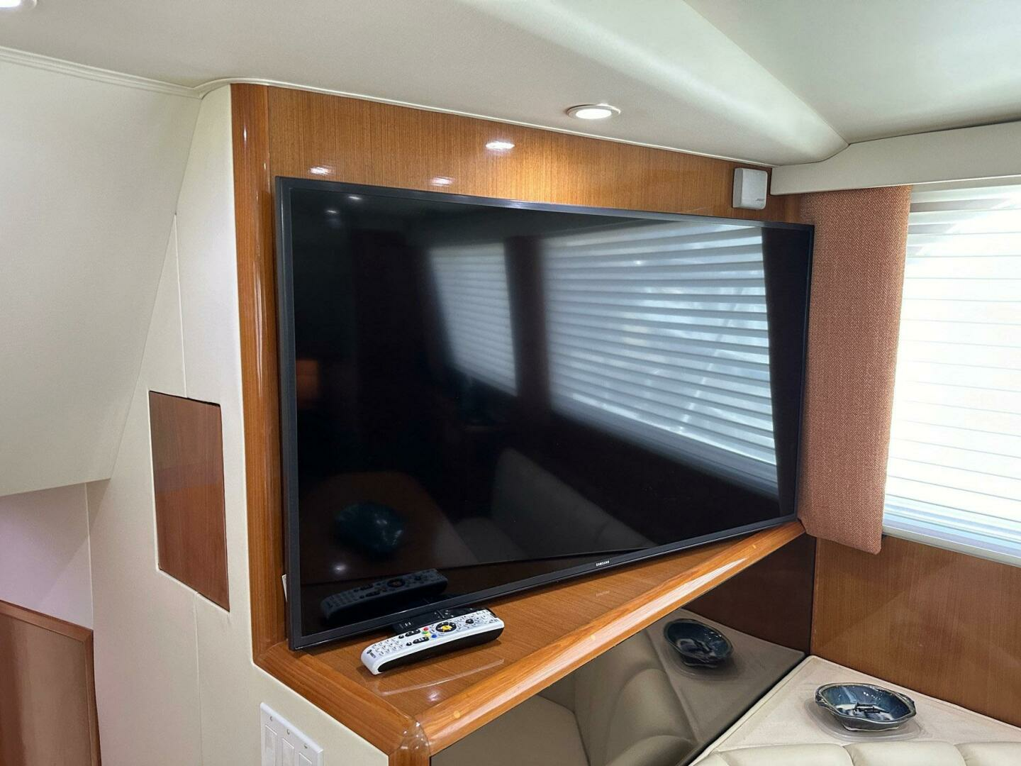 - 46' TV on adjustable mounting bracket that electrically swings down for viewing