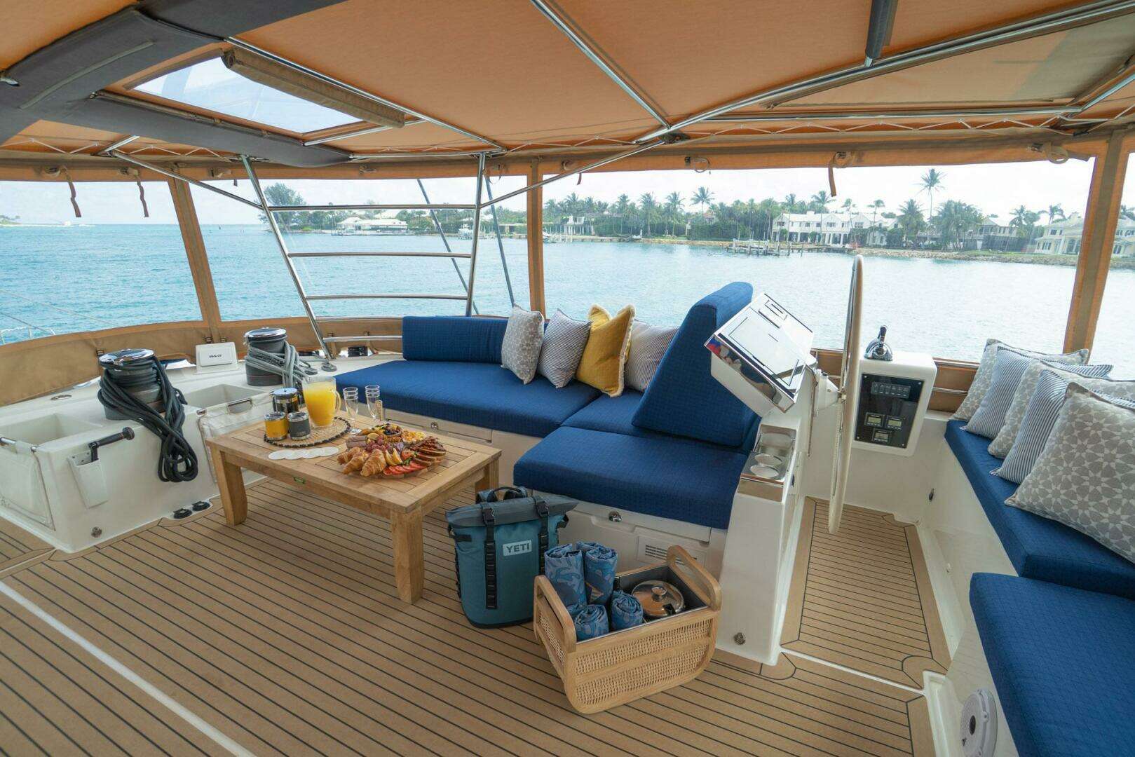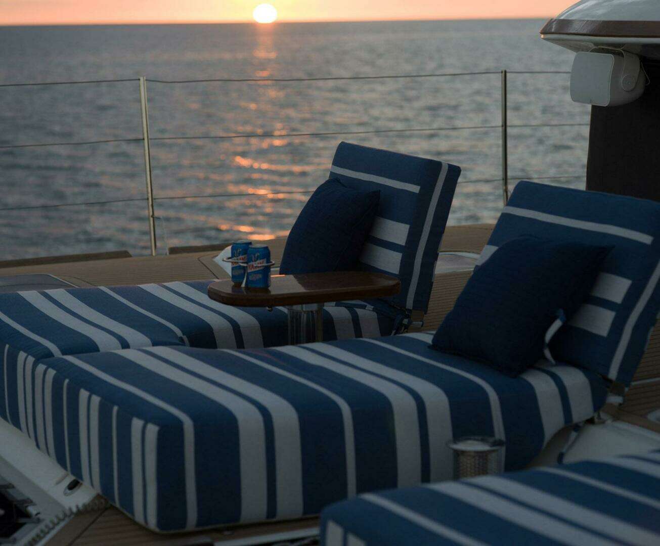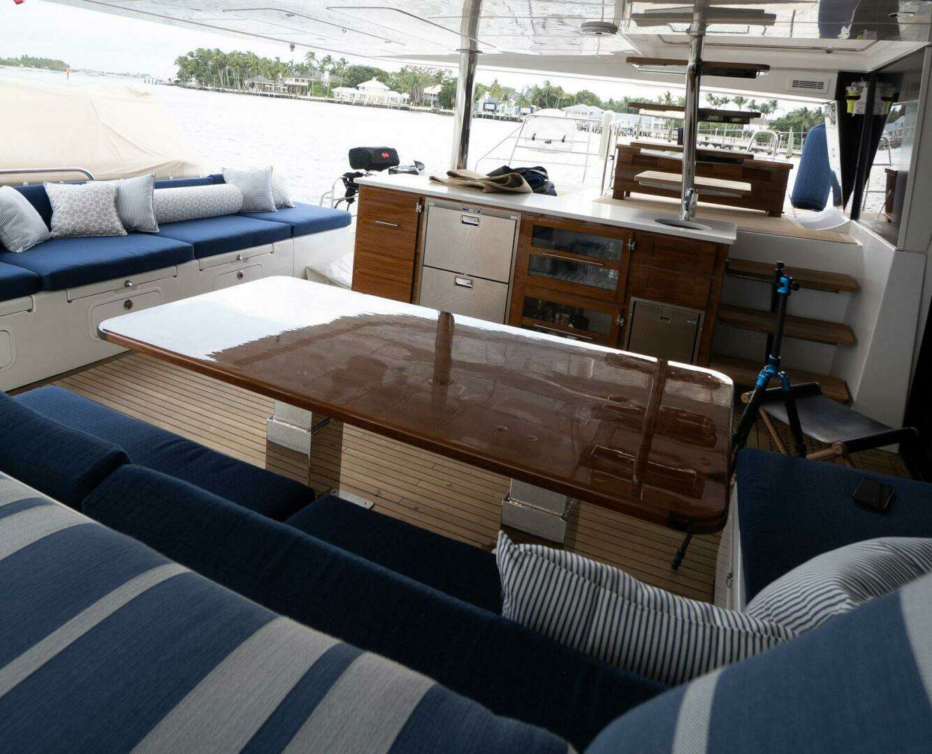 - Aft deck Wet Bar with Ice Maker, Beverage Refrigerator, and Storage Locker