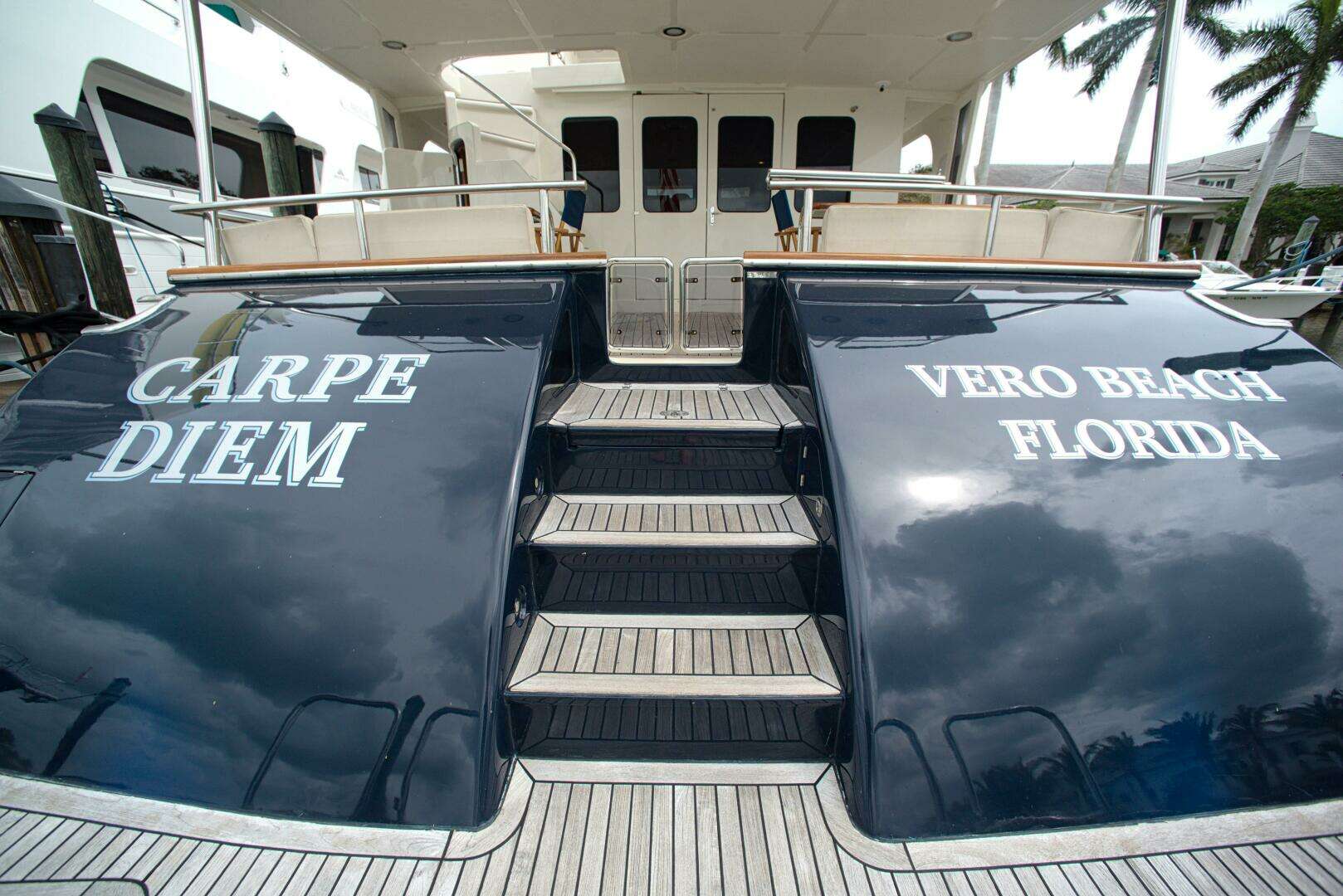 When approaching “Carpe Diem," you will notice her prominent and beautiful traditional lines, the low profile, and the stunning Flag Blue painted hull made famous by our Marlow Explorers. With her open flybridge and enclosed pilothouse, high bulwarks, gorgeous teak cap rails, and teak decking along with the beautiful non-skid decks, recessed cleats on the bulwarks off the deck, one can easily see and feel the seaworthiness and safety of this vessel. When entering inside from the aft deck, this spacious vessel's beam of 19'6" makes her generous and lavish living space feel like your luxury home on the water. The feeling of opulence is what one feels when walking past her remarkable and specially designed interiors that grace the yacht throughout. This is the perfect stylish yacht for the cruising couple or for the new owners who wish to have a captain aboard and still have room for another couple and/or family to enjoy together with or without additional crew.