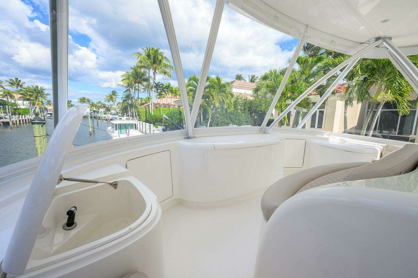 - Mezzanine seating, Armrest with cup holders teak deck, covering boards and coaming