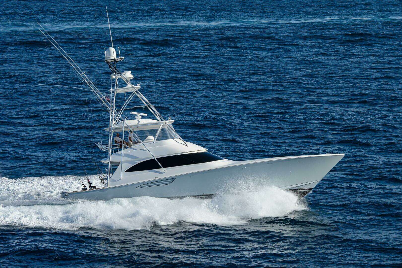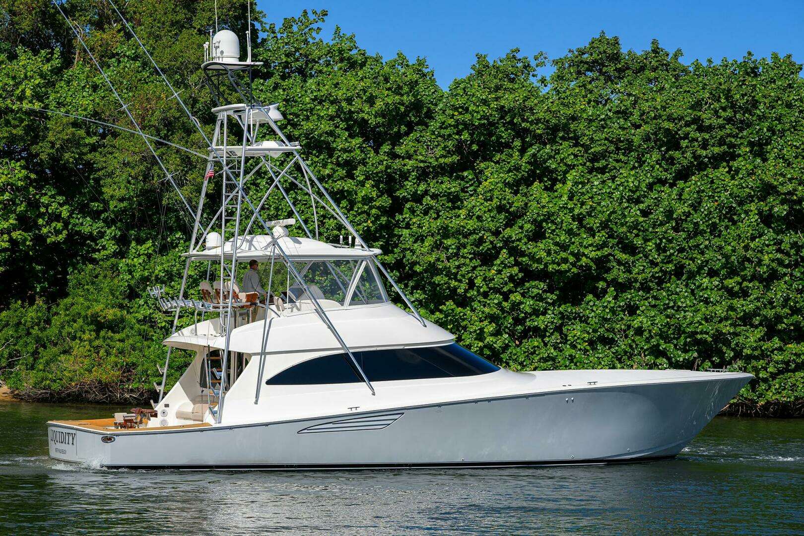 The 2015 62' Viking Convertible "Liquidity" has been maintained with an open checkbook since new, with all engine work expertly handled by Smith and Wick Marine. Her upgraded CAT C32A 1,925 hp engines have received continuous, proactive service, including the comprehensive 1,000-hour service intervals as required. Built for elite performance and stability, she features a Kingston Gray painted hull, full teak package, Seakeeper 26, and Omni sonar. The vessel is fully optimized for long-range travel and fishing with twin generators, extra fuel, an Eskimo ice machine, and a watermaker. Her professional-grade outfitting is completed by AME electronics and a custom Palm Beach Towers tuna tower.