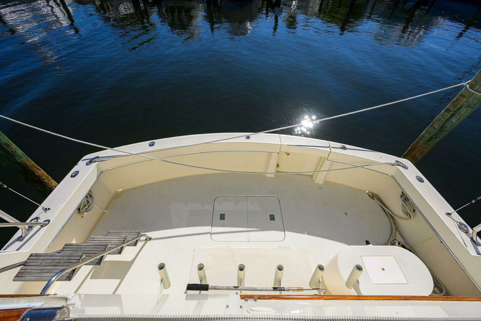Robust construction featuring a solid fiberglass hull, wide beam, and legendary Hatteras build quality.