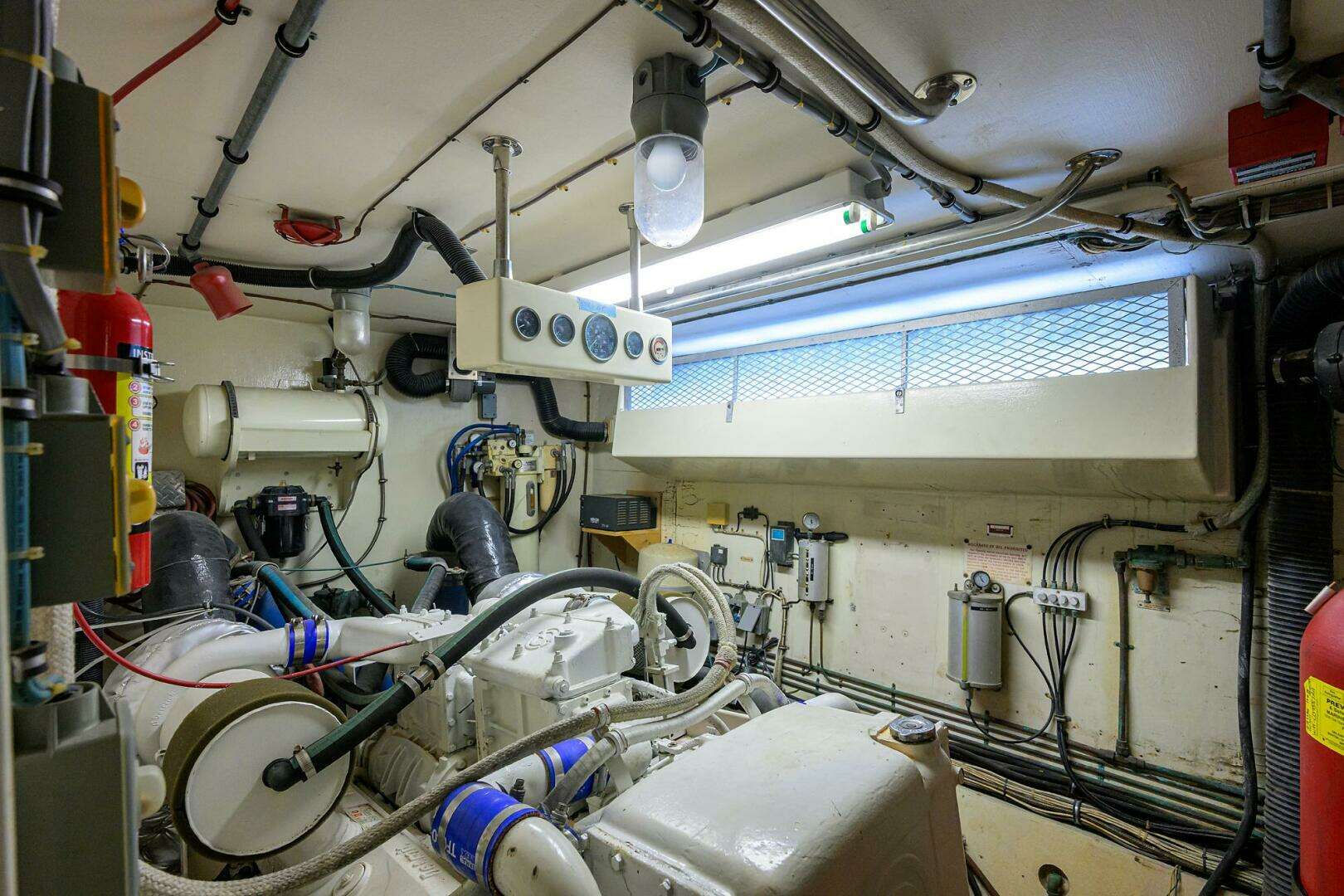 This 63 Hatteras features split engine rooms allowing for good accessability and the Detroit 12V71 diesels are in excellent condition.