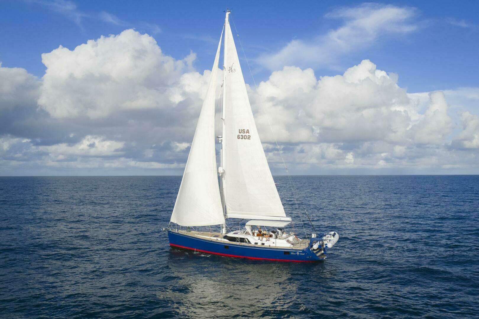 The Hylas 63 is a proven bluewater cruiser built by Queen Long Marine, one of the world’s best renown semi-custom builders using some of the most modern techniques available. The 63 was crafted using alternating layers of Twaron and fiberglass, making her hull light yet incredibly stiff, and elevating Blue Star to be one of the strongest vessels in her class. Her vacuum-bagged hull ensures equal and proper distribution of resin throughout. This German Frers design makes no compromise on comfort nor performance.