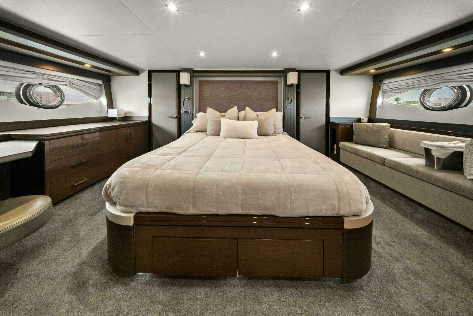 Below deck, the yacht offers a well-appointed three- or four-stateroom configuration (layout dependent), highlighted by a full-beam master suite with private en-suite head, ample storage, and elegant woodwork. Guest accommodations are comfortably arranged to provide privacy and livability for family and friends.