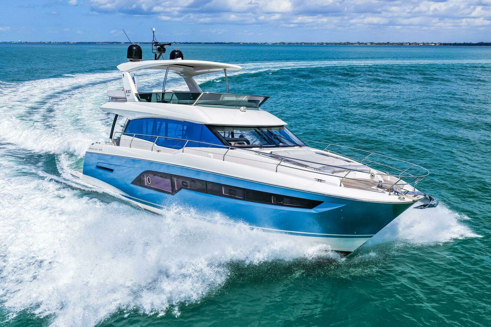 Meet “Peace,” a stunning 2019 Prestige 630F for sale that delivers effortless luxury and refined performance in the heart of Sarasota. Finished in rare Factory Blue Awlgrip, her sleek profile turns heads while promising comfort and confidence underway. Step aboard to discover brand-new white leather upholstery that brightens the interior with a clean, modern elegance, perfectly complemented by high-gloss teak tables with beautiful inlays that add warmth and craftsmanship throughout. Expansive windows, thoughtful layouts, and Prestige’s signature fit and finish create a serene onboard experience ideal for entertaining or extended cruising. Impeccably maintained and thoughtfully updated, Peace lives up to her name—offering a calm, sophisticated escape on the water and an exceptional opportunity for the discerning yachtsman ready to cruise in style.