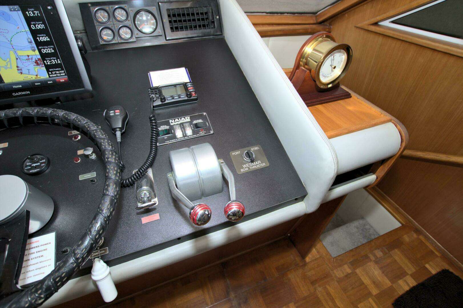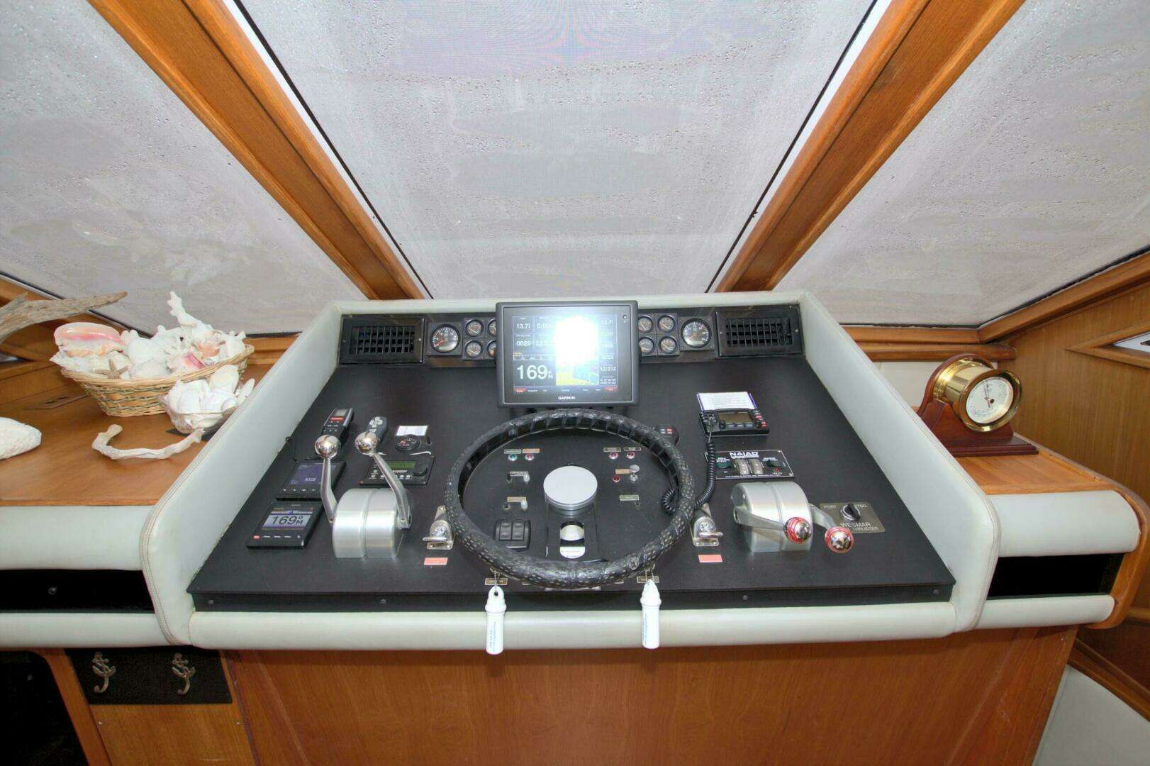 - Garmin suite with chart plotters, HD radar, autopilot w/ wireless remotes, AIS, depth, and wind instrumentation
