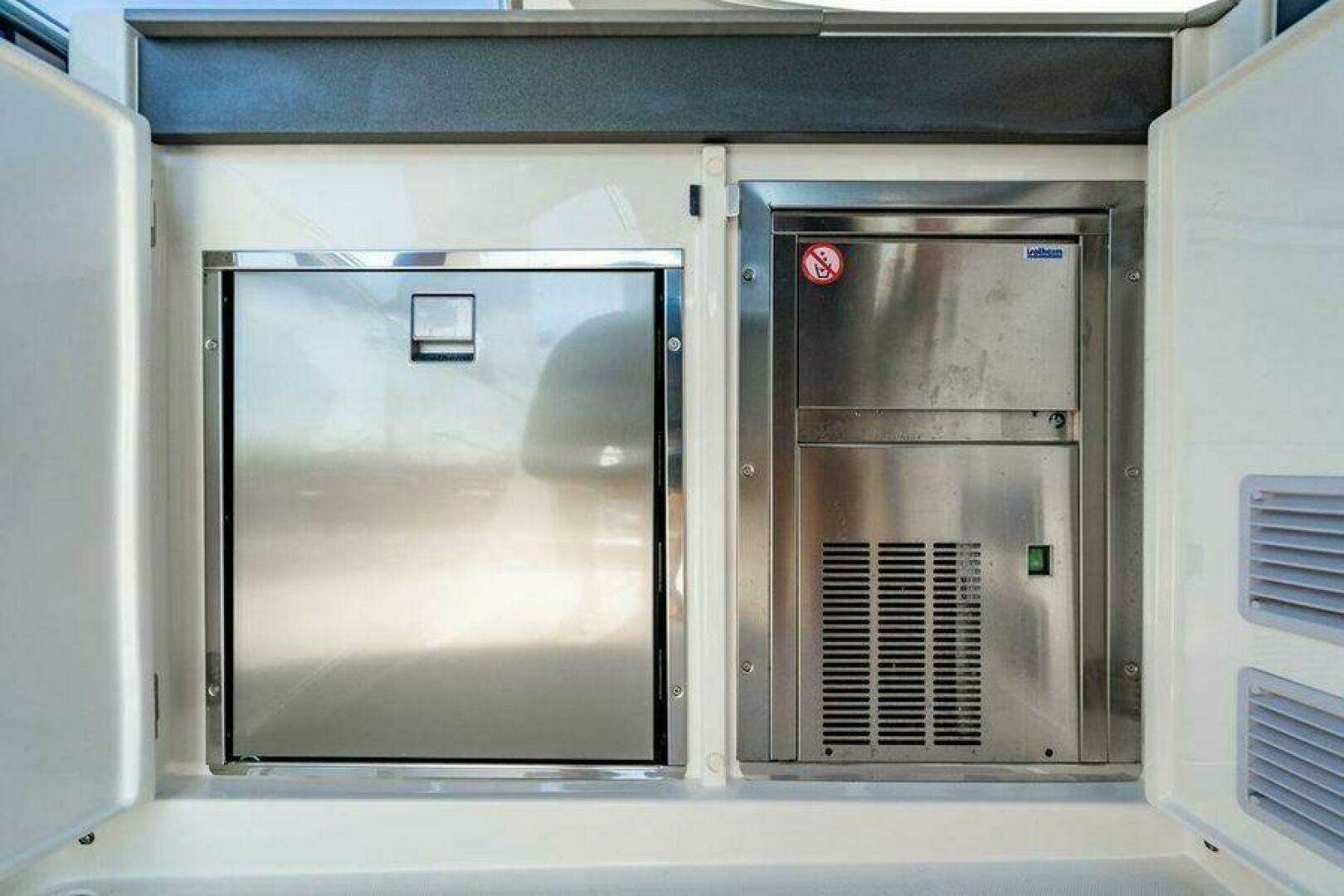 At the helm, four Garmin 22” displays, solid-state radar, AIS weather and identification system, monitoring system, and integrated cockpit and engine room cameras provide advanced navigation and full vessel awareness. Dual 21.5kW generators, a 3000W inverter, bow thruster, and double Racor fuel filtration system support confident cruising and onboard reliability.