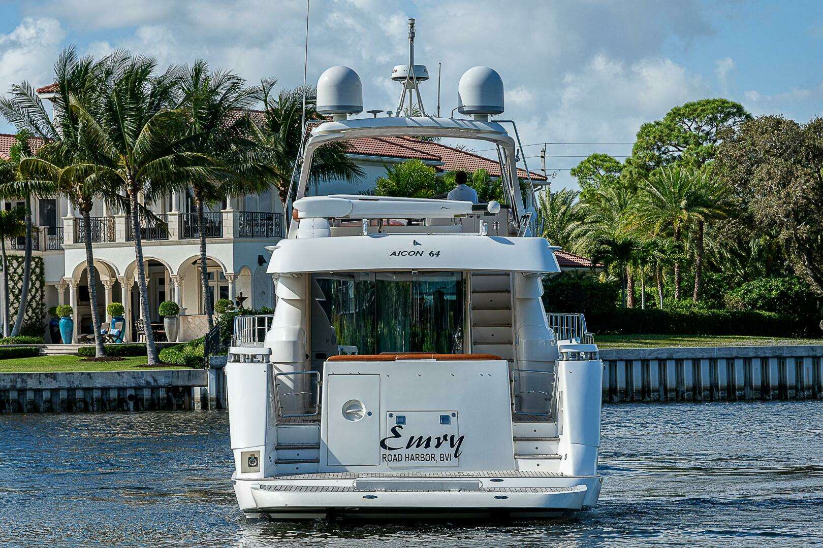 Introducing the 2009 Aicon 64 Flybridge Motor Yacht "EMRY" a stunning blend of timeless European design, strong performance, and luxurious comfort. Powered by twin 1,360HP MAN engines with only 1,000 hours, this yacht delivers an exceptional cruising experience with elegant style and thoughtful craftsmanship throughout.