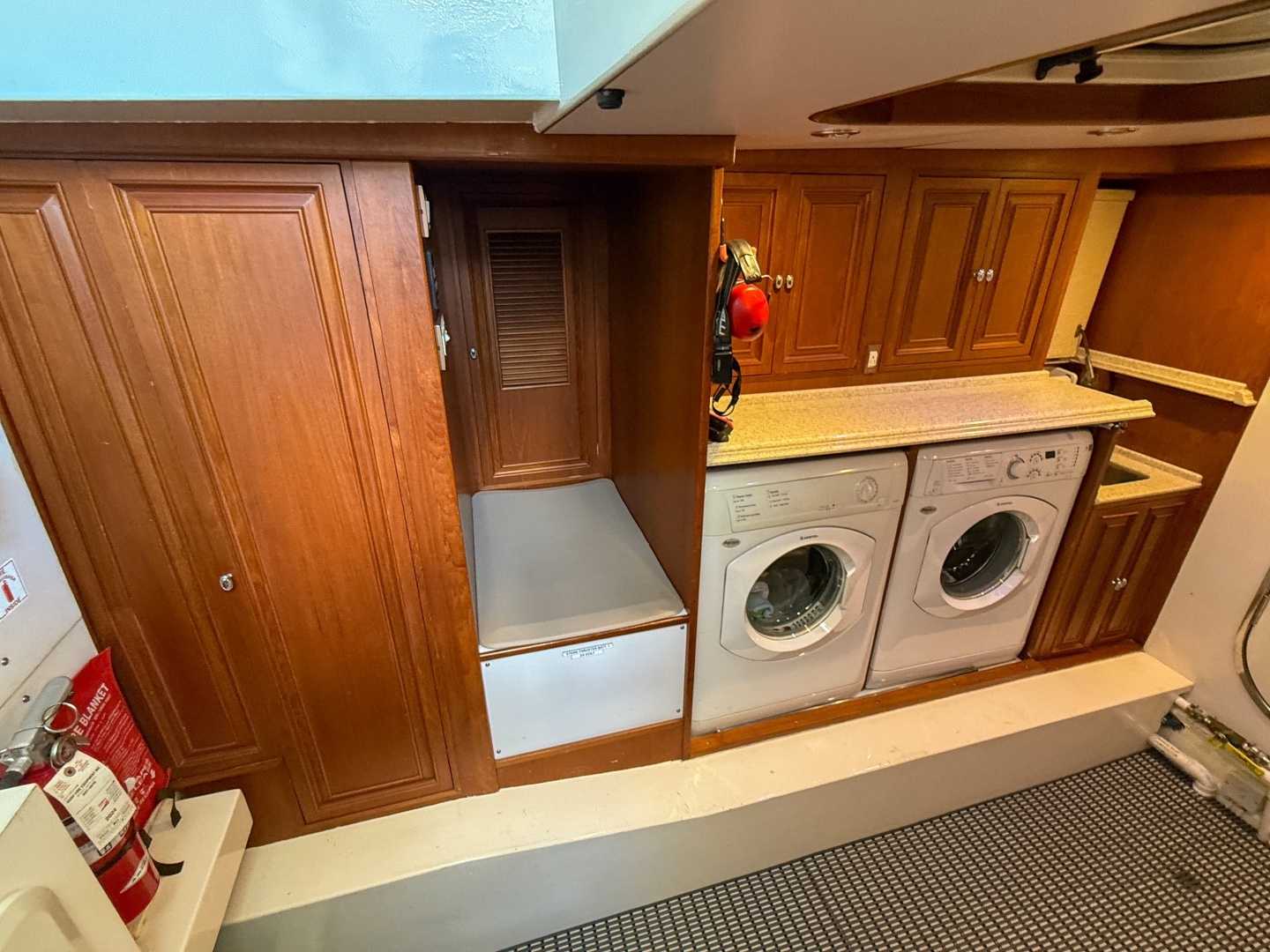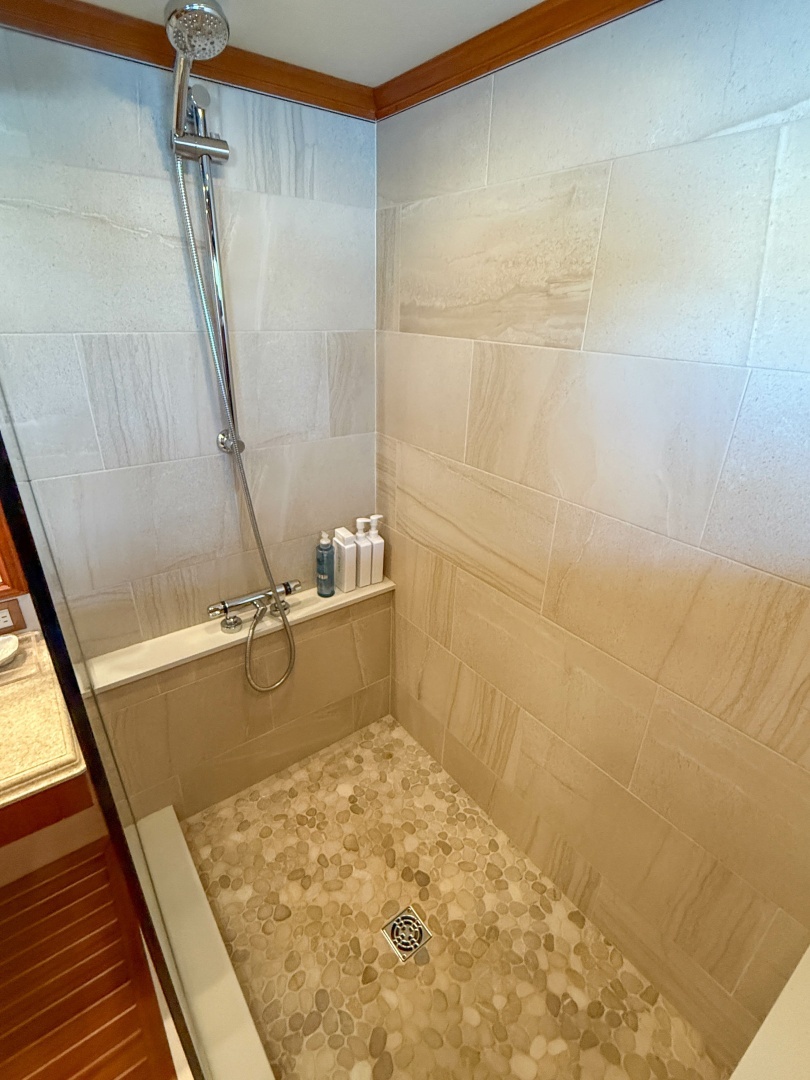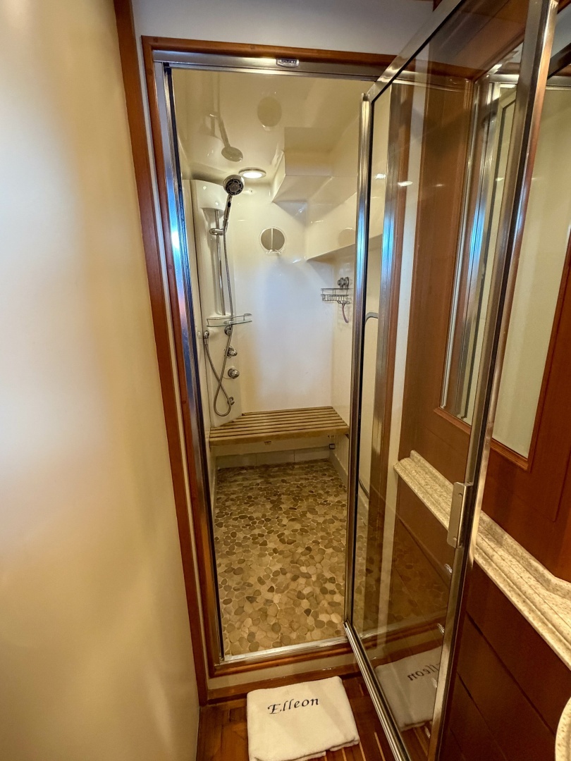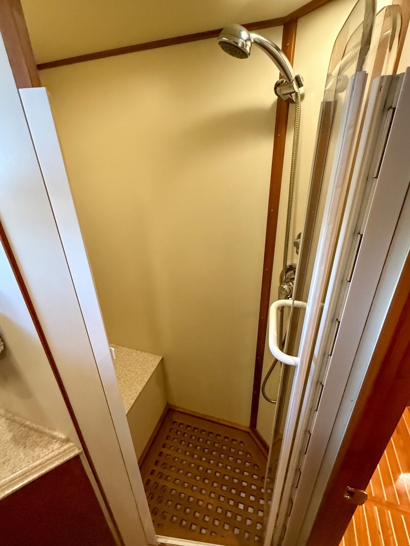 - Shower has watertight hatch providing access to the engine room and lazarette laundry room