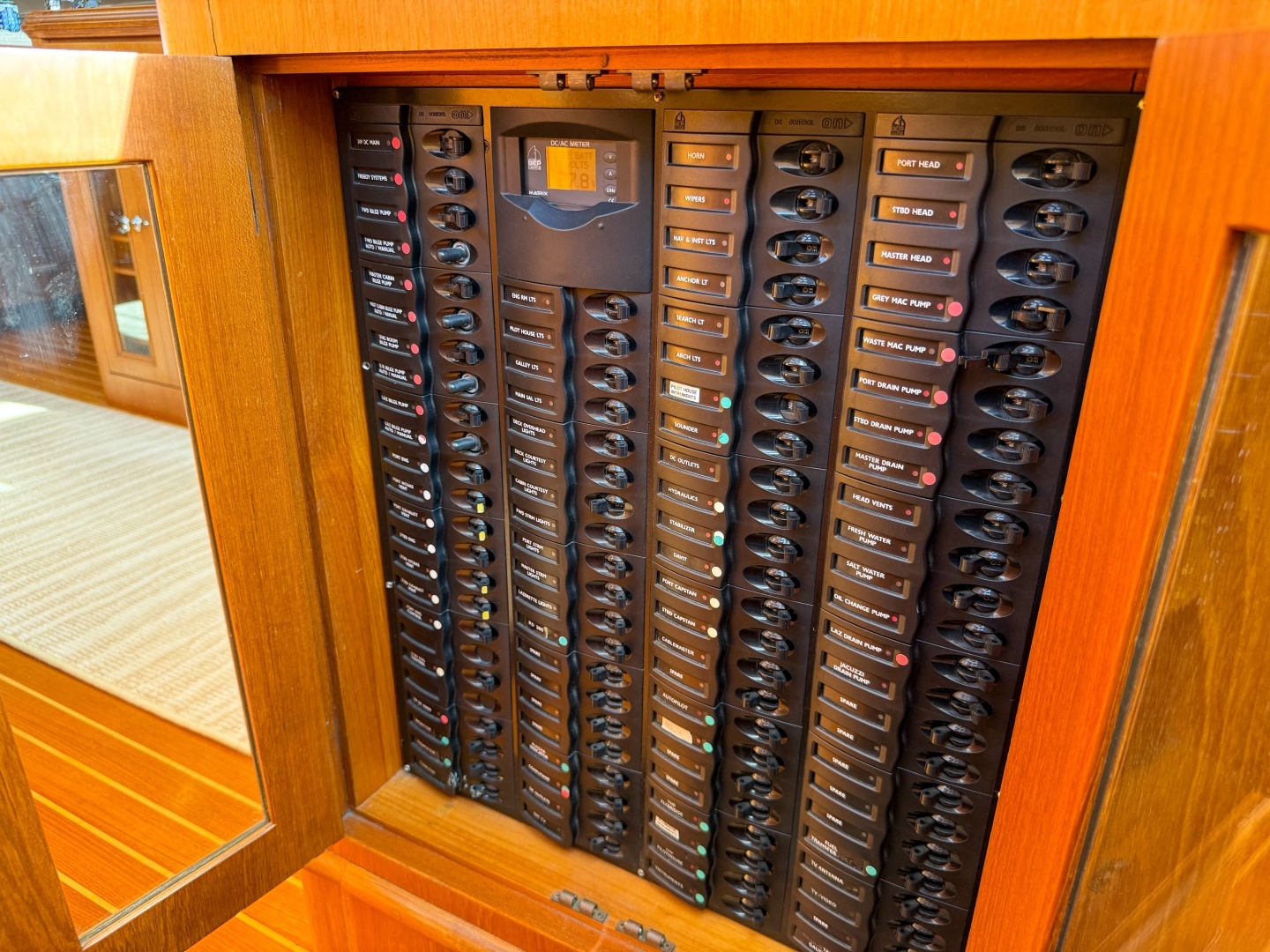 - Custom teak cabinetry