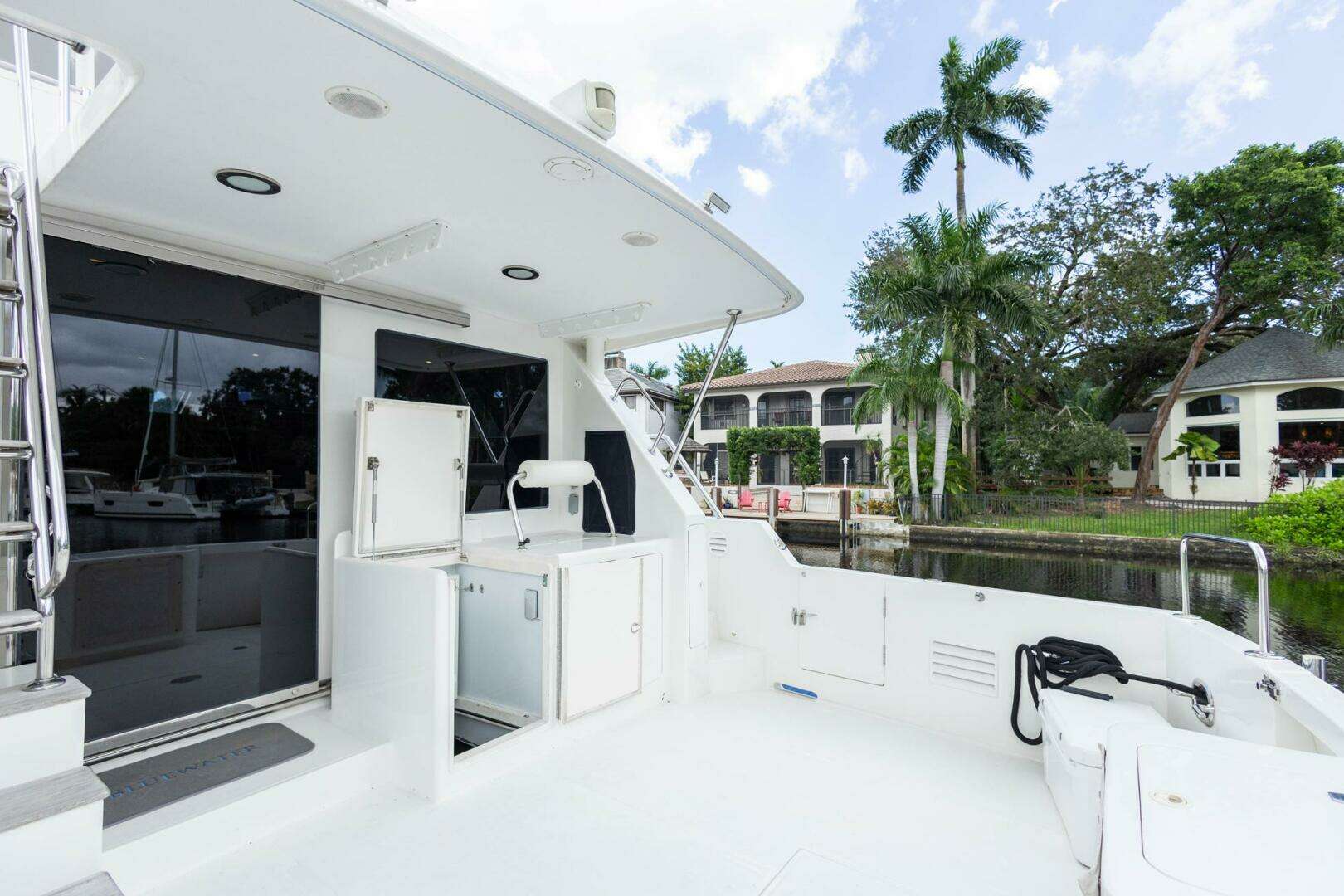 - Fresh water spigot, located by custom BBQ cabinet on flybridge aft deck.