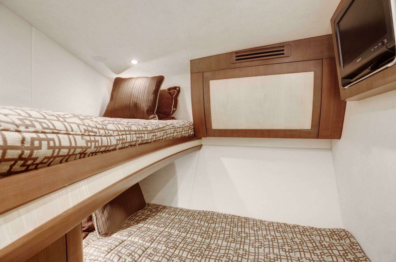 Inside, craftsmanship is showcased through walnut cabinetry with maple inlays throughout, executed with CNC precision joinery. The thoughtful layout provides four staterooms and three heads, along with crew accommodations, ensuring both guest comfort and crew functionality.