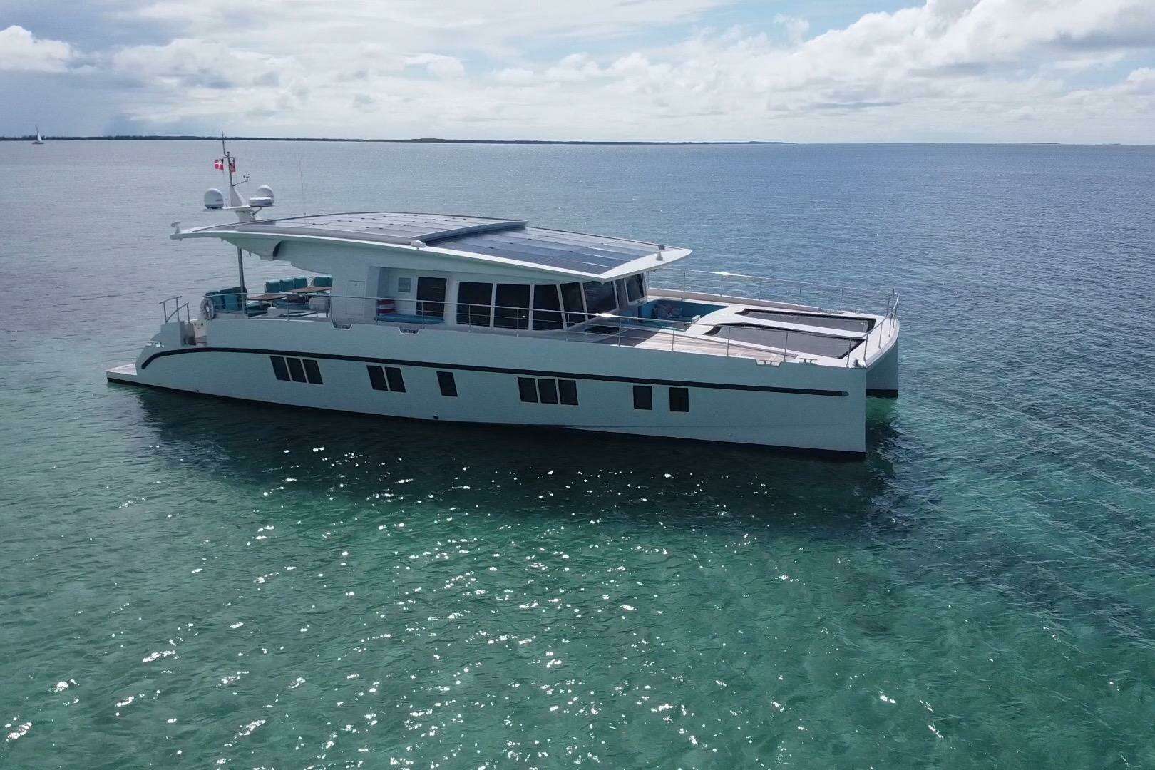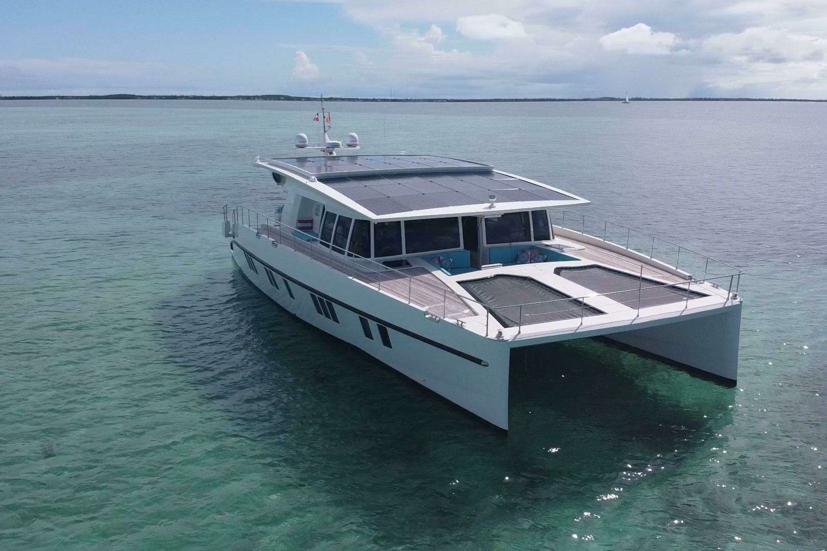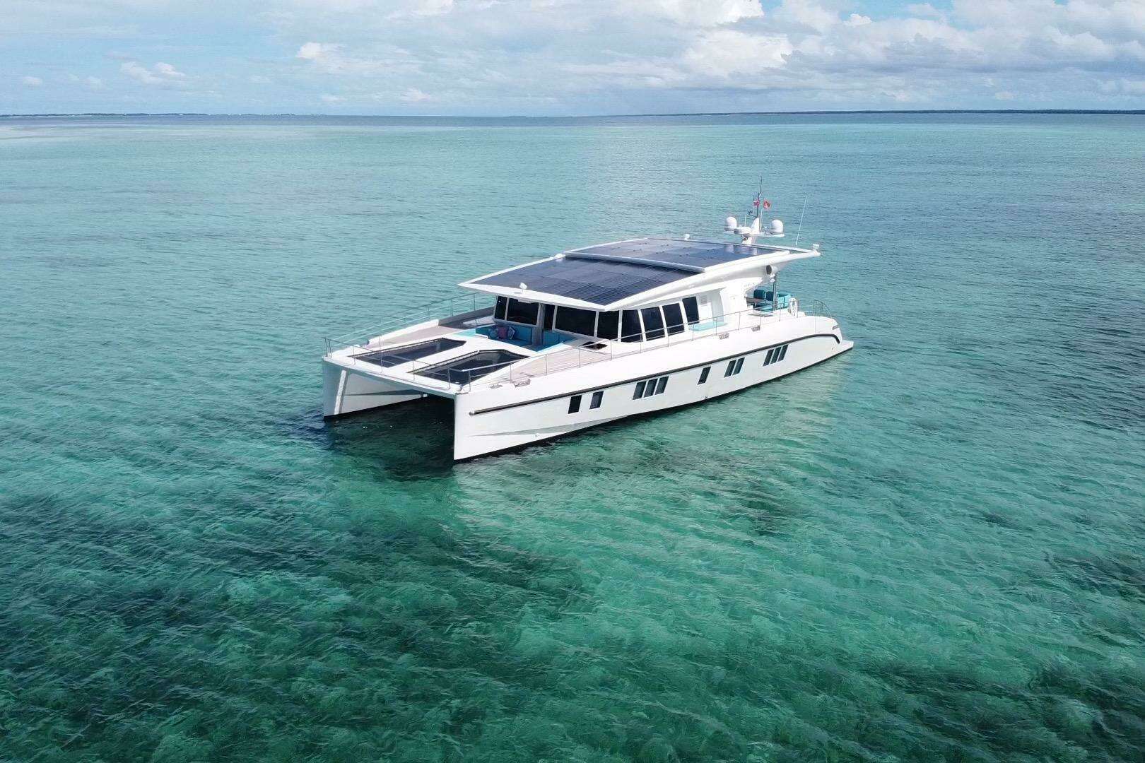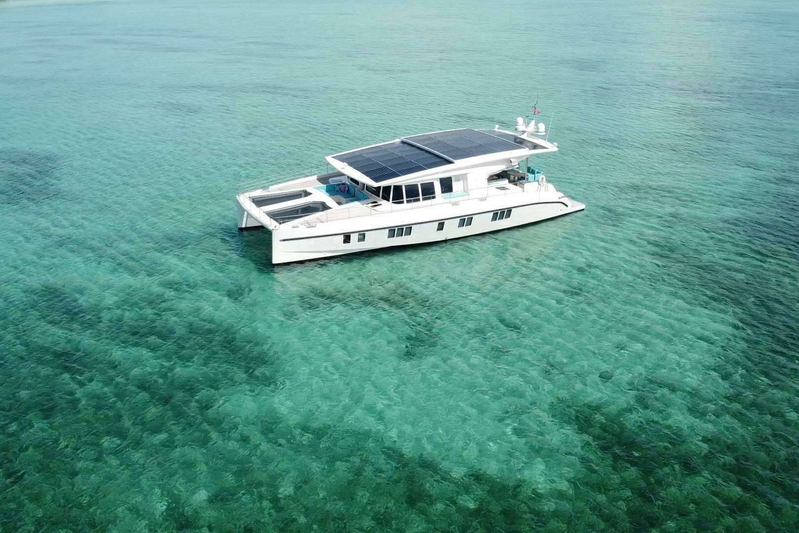 LEAVE THE PAST BEHINDWhether you are heading to a spot you know well or exploring a new oasis, there is no better way to do it than in the peace and comfort of your Serenity. Our quiet electric and hybrid motors give you the opportunity to experience the sea the way you always imagined it. Breathe and take in the salt air, not the diesel fumes. Listen to the waves lapping against the hull instead of the rumble of the engines below you. Experience the virtually endless range of a sailboat without sacrificing the luxury and security of a power-cat. Enjoy yachting the way it was meant to be: just you, the sea, and Serenity.Dimensions:LOA: 64BOA: 31Draft: 3.624 TonElectric Engines: 2 Tena-SPM 132-12 18 KWDiesel Engines: 2 Volvo D3-200-iSolar: 65 Square Meters -2400/m2AC: 50,000 BTU 10 unitsDiesel: (1) 1200L (336 Gal) Day Tank. (2) 317L (88 Gal) Day TankWater: 435 GalonsWatermaker: Indromar MSK 130 (130L/hr)Batteries: Samsung Lithium 100V38/KWh (4 pieces 152 KWh total)4 Cabins with ensuite bathrooms1 Crew cabinTender: Williams Sport Jet 395
