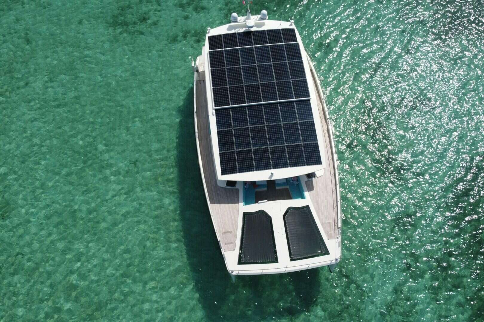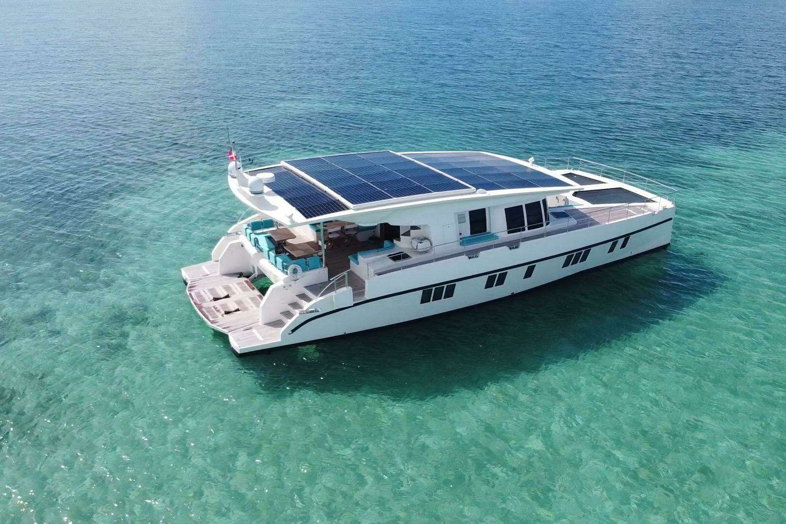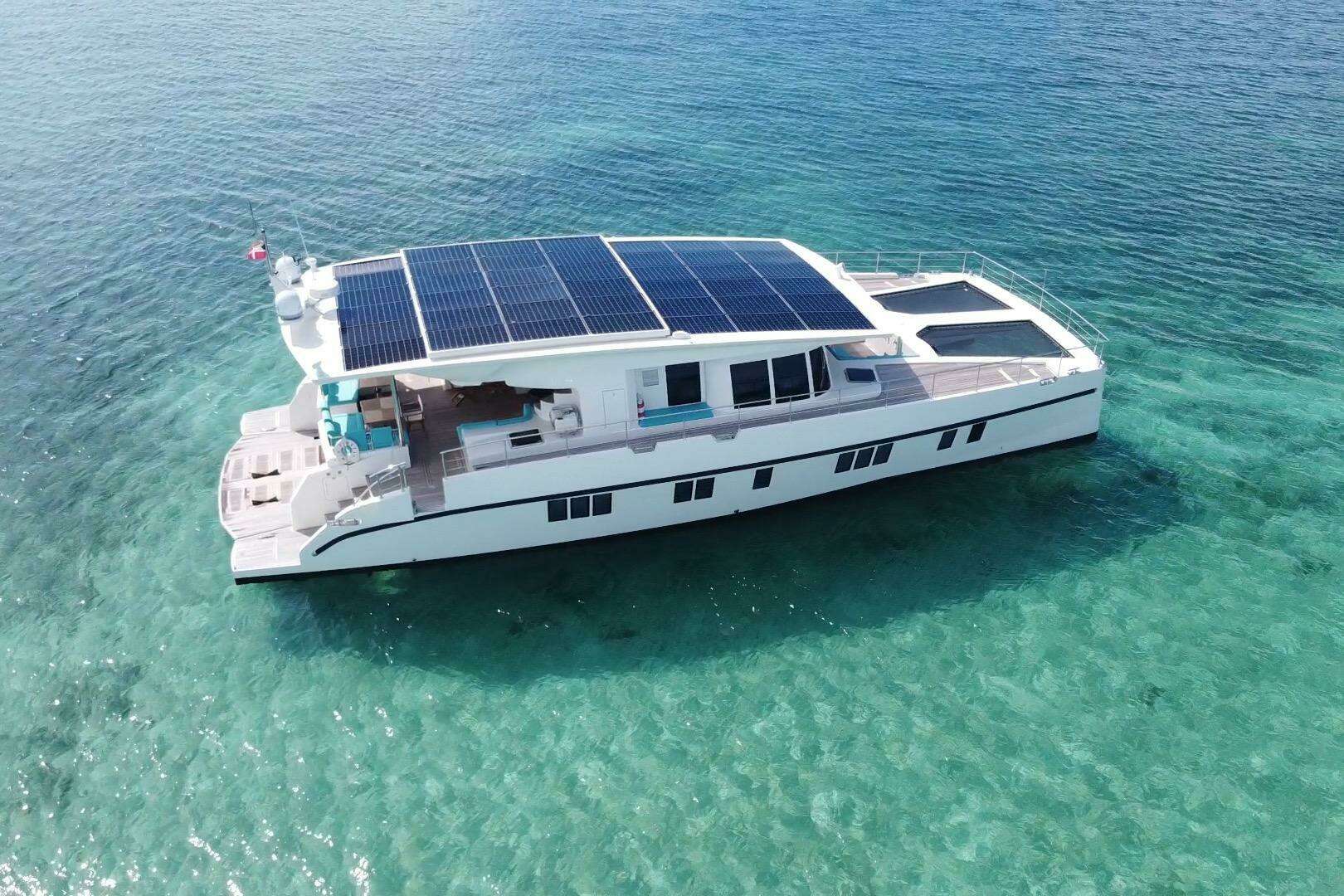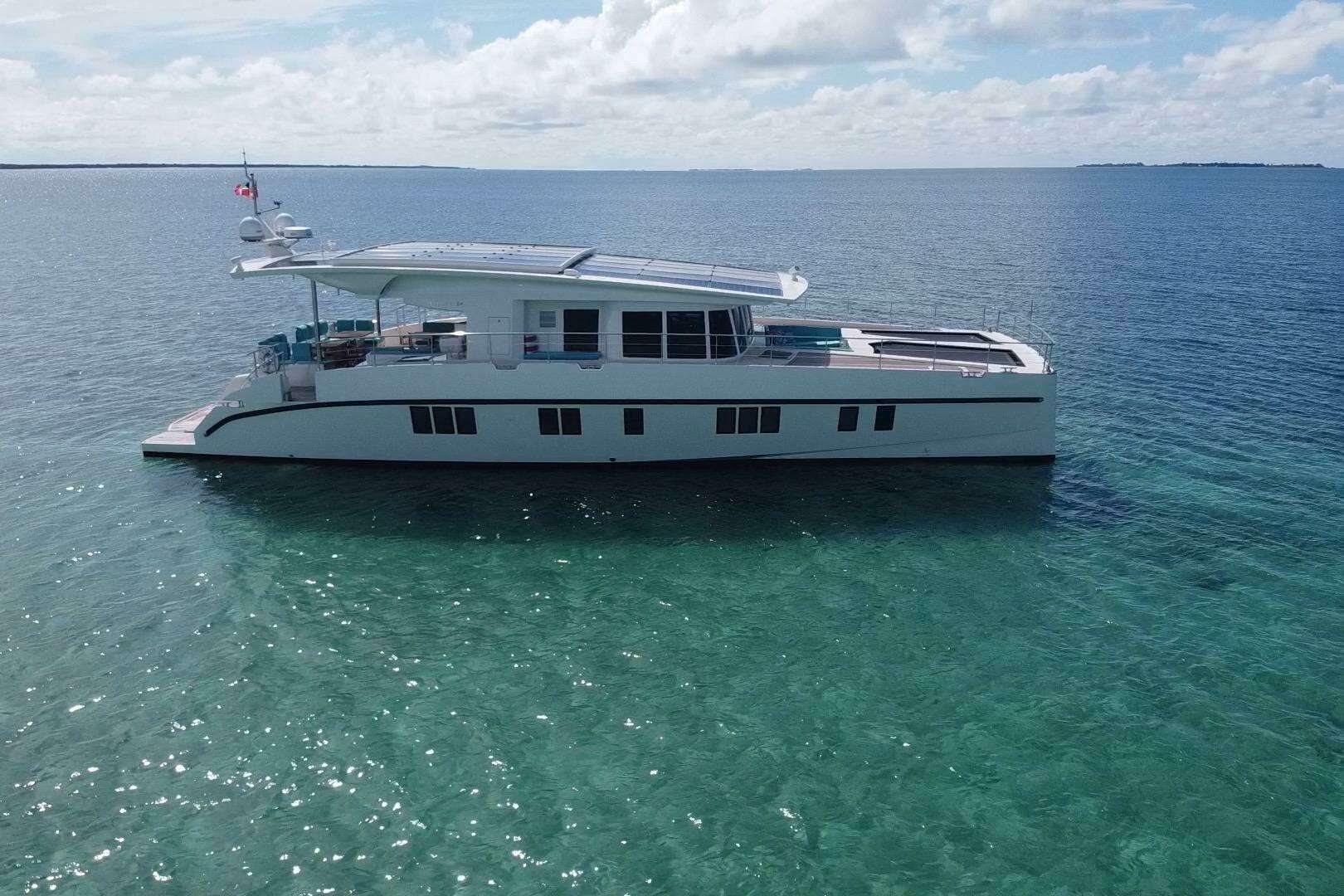 LEAVE THE PAST BEHINDWhether you are heading to a spot you know well or exploring a new oasis, there is no better way to do it than in the peace and comfort of your Serenity. Our quiet electric and hybrid motors give you the opportunity to experience the sea the way you always imagined it. Breathe and take in the salt air, not the diesel fumes. Listen to the waves lapping against the hull instead of the rumble of the engines below you. Experience the virtually endless range of a sailboat without sacrificing the luxury and security of a power-cat. Enjoy yachting the way it was meant to be: just you, the sea, and Serenity.Dimensions:LOA: 64BOA: 31Draft: 3.624 TonElectric Engines: 2 Tena-SPM 132-12 18 KWDiesel Engines: 2 Volvo D3-200-iSolar: 65 Square Meters -2400/m2AC: 50,000 BTU 10 unitsDiesel: (1) 1200L (336 Gal) Day Tank. (2) 317L (88 Gal) Day TankWater: 435 GalonsWatermaker: Indromar MSK 130 (130L/hr)Batteries: Samsung Lithium 100V38/KWh (4 pieces 152 KWh total)4 Cabins with ensuite bathrooms1 Crew cabinTender: Williams Sport Jet 395