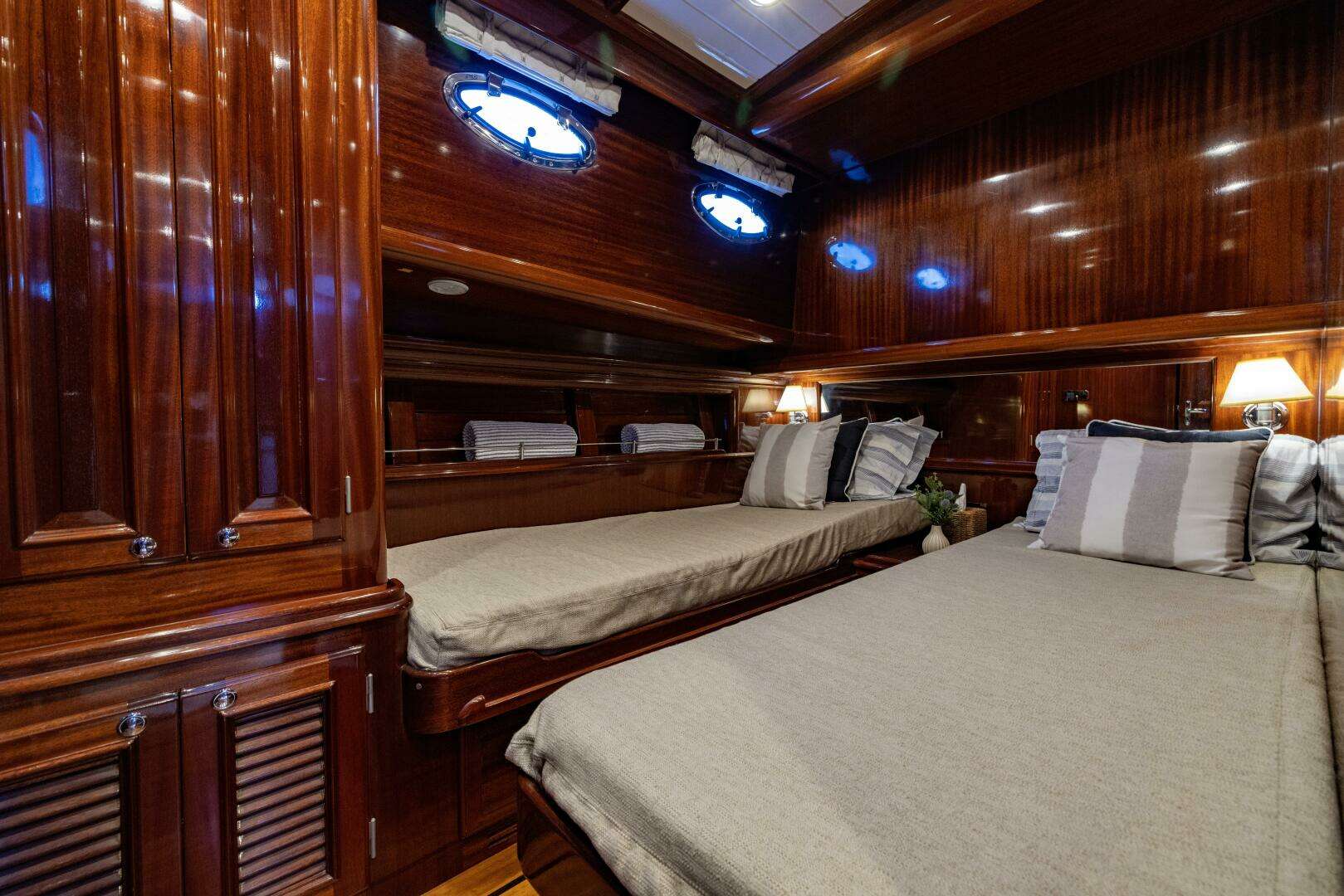 - Spacious Layout: 3 luxurious staterooms + crew quarters, full-beam master suite