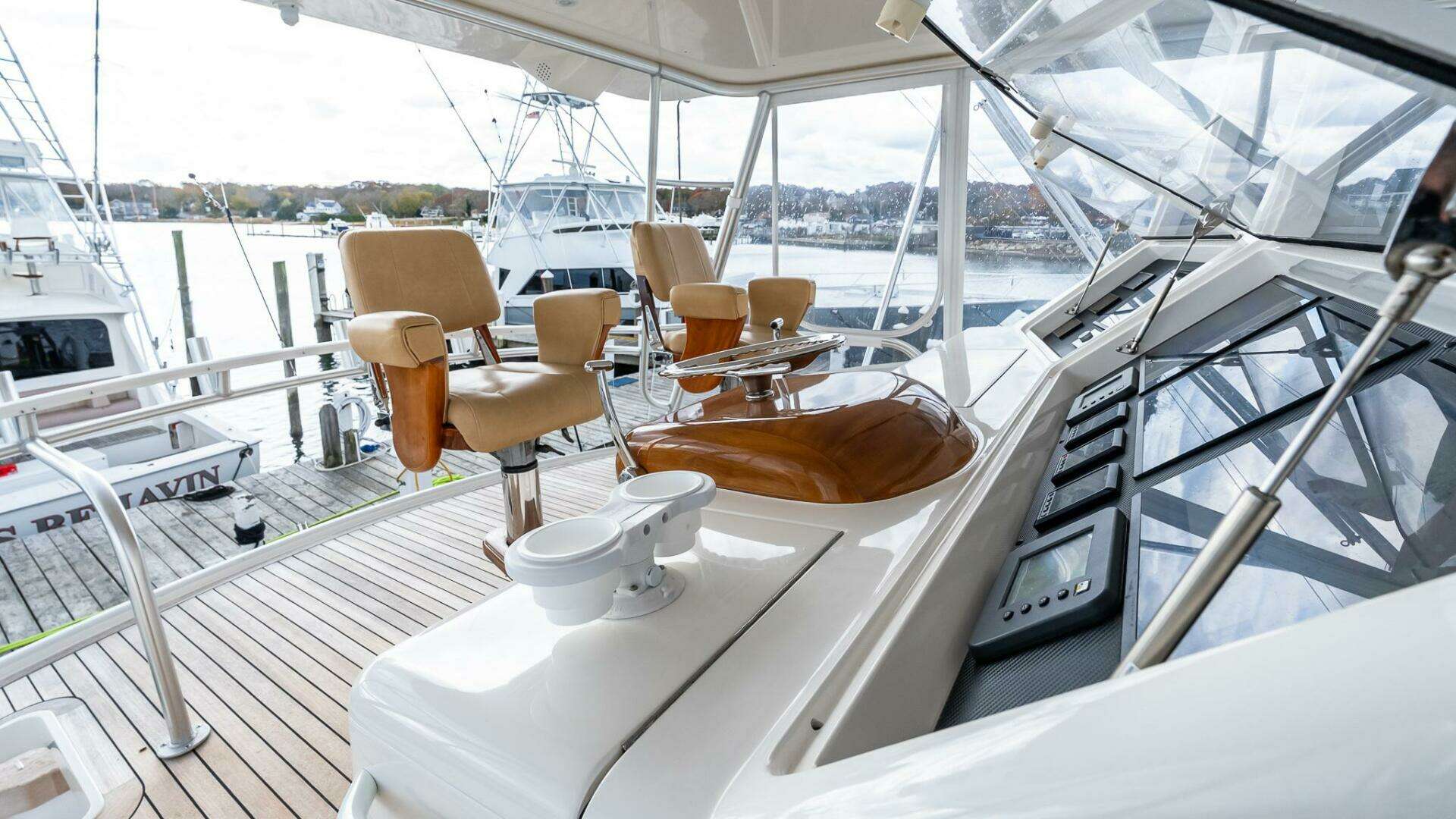 - Teak helm pod with Palm Beach controls