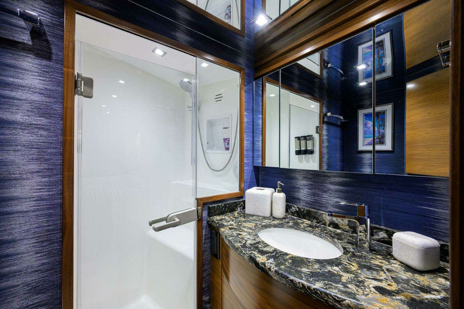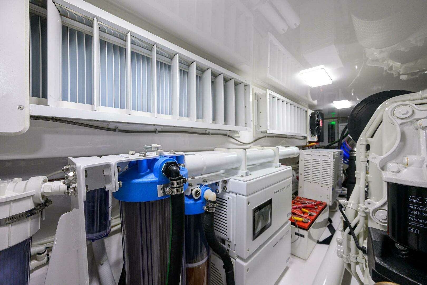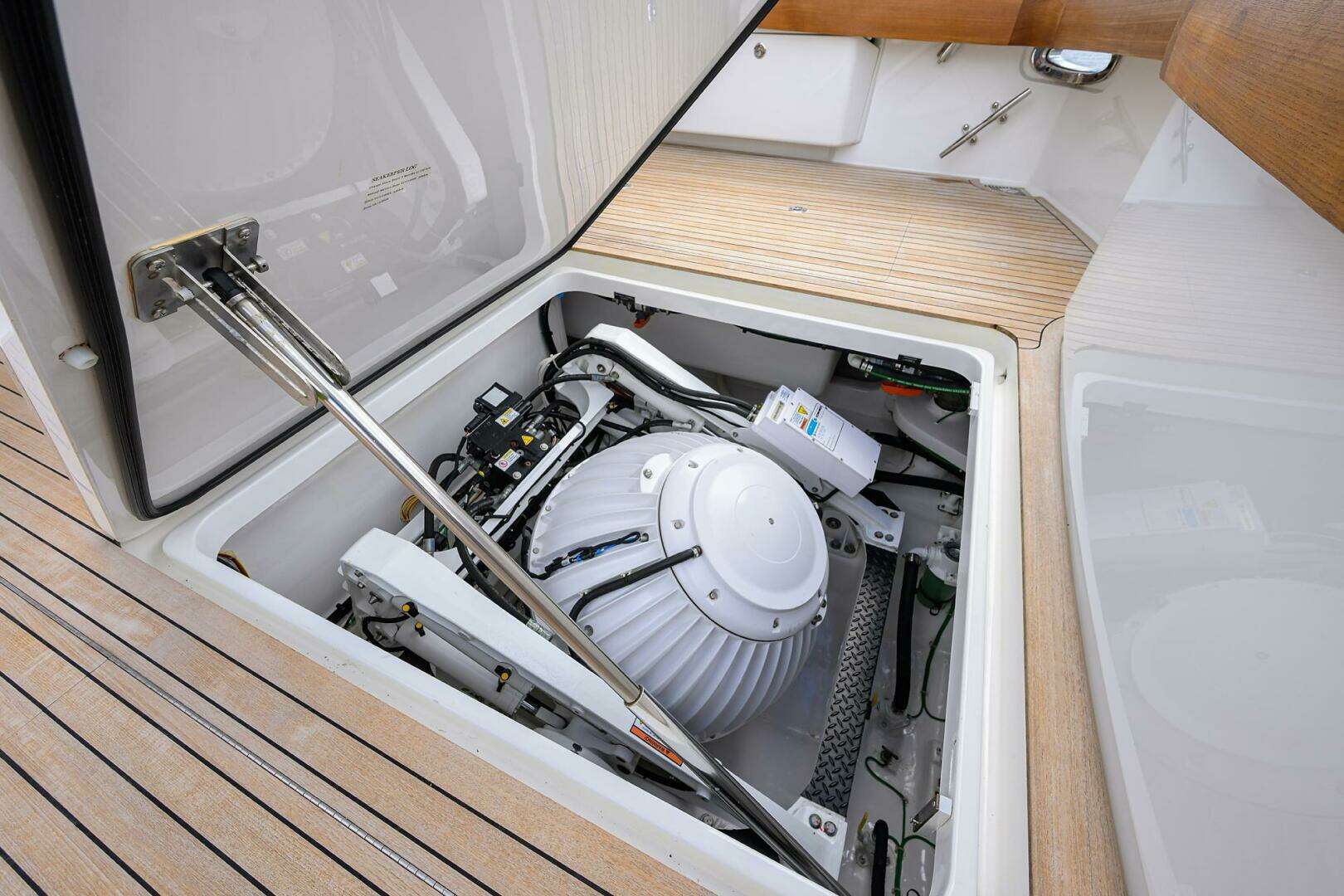 Notable Highlights Omni Sonar New SeaKeeper 26 Sphere 10/25 Teak deck and coverboards by Teak Shiek Faux teak toe rail, transom, aft bulkhead ElectroSea clear line system and pumps Watermaker Spot Zero combo XZ2 1800/2000 unit with double bass