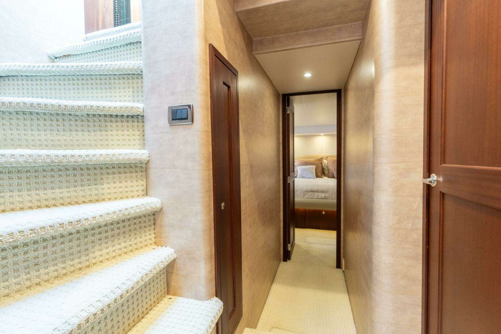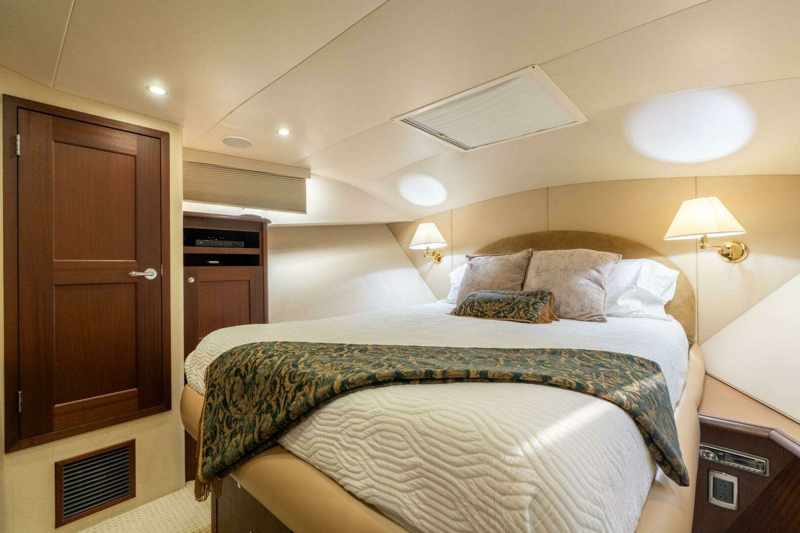 Her interior is finished in hand-crafted cherry joinery, complemented by designer soft goods and granite countertops. The master stateroom is full-beam and a centerline berth, while the VIP and guest staterooms provide luxurious accommodations for family and friends.