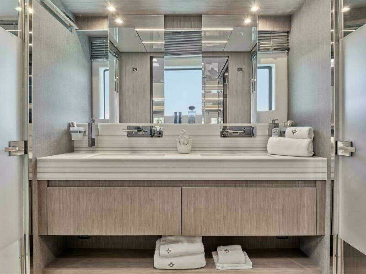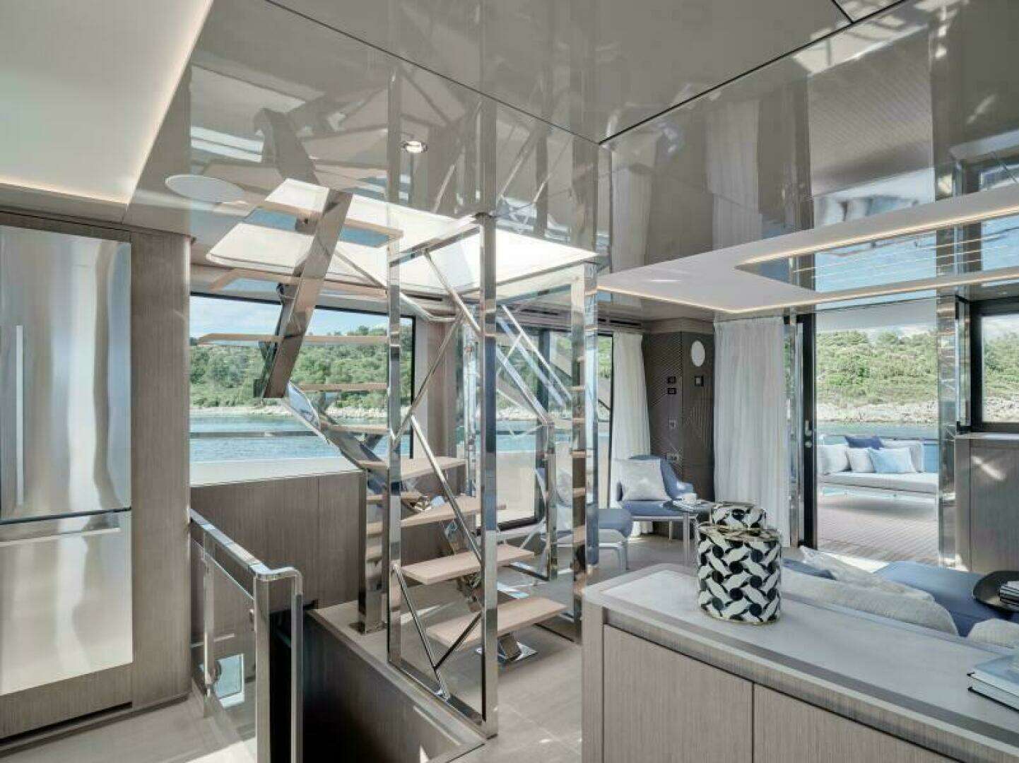 Bowers & Wilkins Package: 2 x B&W Marine 8 Speakers in the Cockpit, 2 x B&W Marine 8 Speakers on the Flybridge, 2 x B&W Speakers in Foredeck Lounge, 4 x B&W Speakers in Salon with Powered Subwoofer, 2 x B&W Speakers in Owner's Apartment, Atoll Multizone Receiver and Amplifier with Touch Screen.