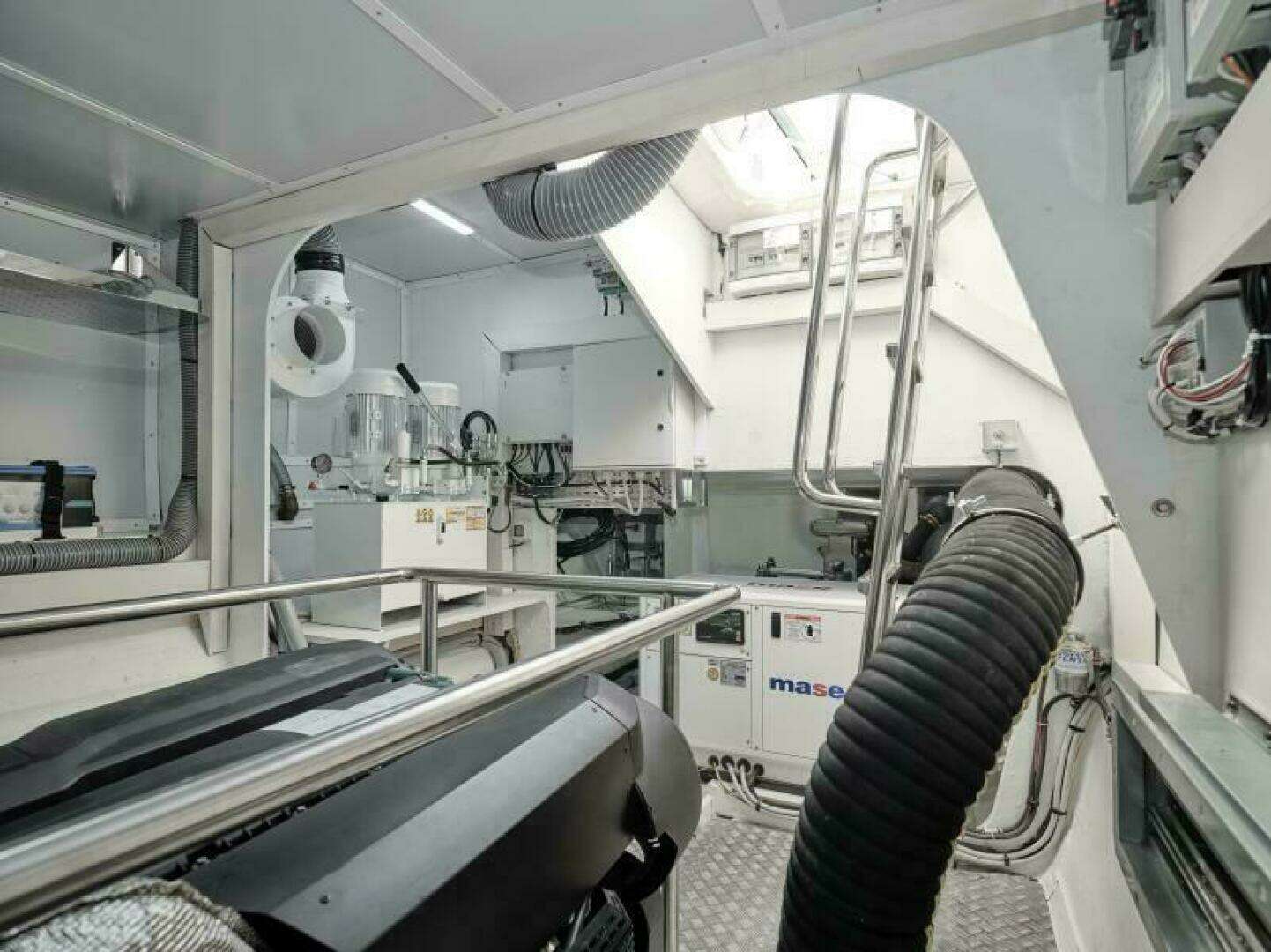 North American Package: Maindeck protective covers: Cockpit sofa and forward lounge cushions, Flybridge protective covers: sofa, helm console and seats, table, fly searchlight and rear docking lights, Ice maker in cockpit, Kenyon grill XXL at the flybridge galley, Dual fuel/water separators with alarm.