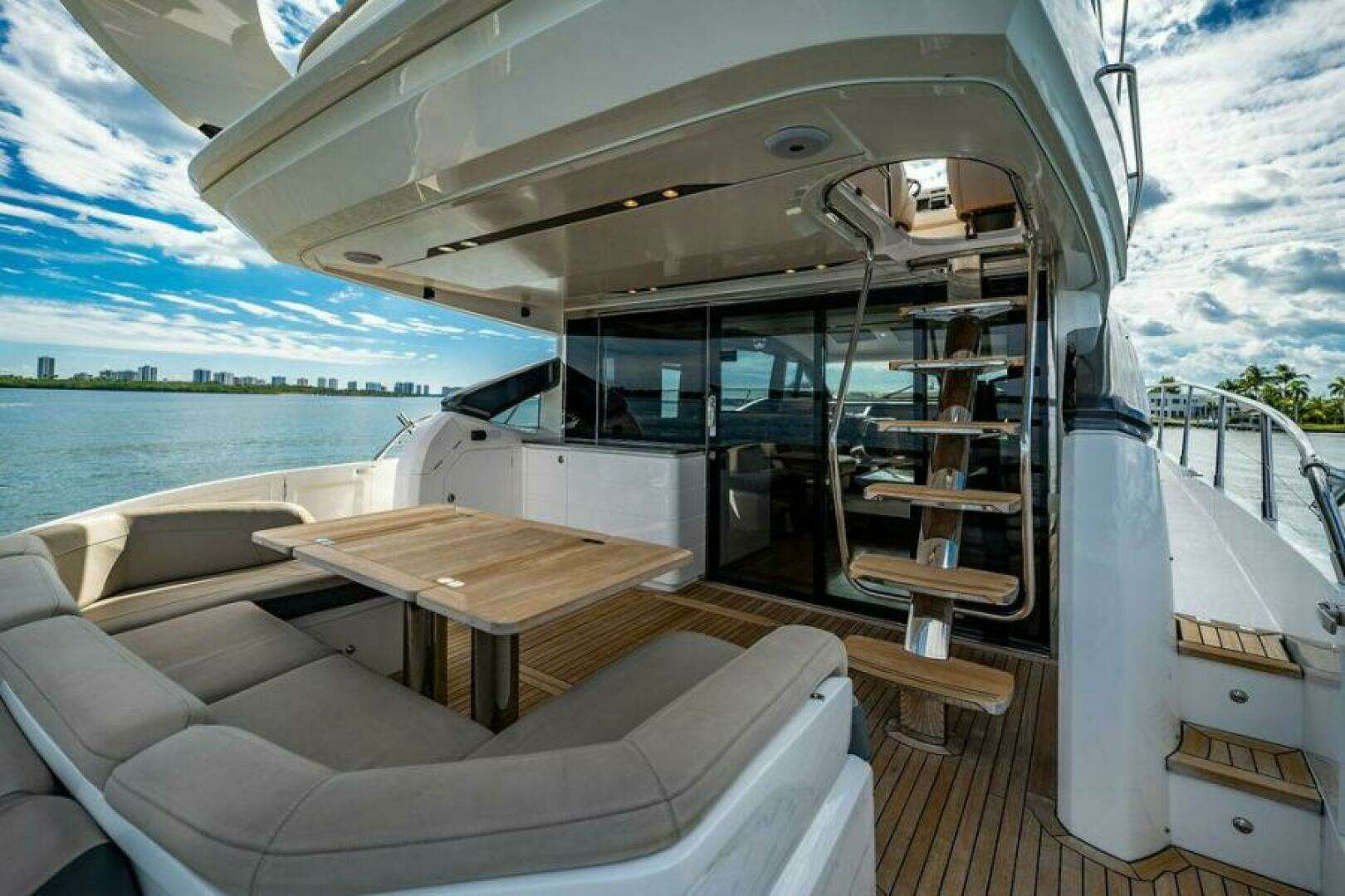 - U-shaped aft seating area with teak table