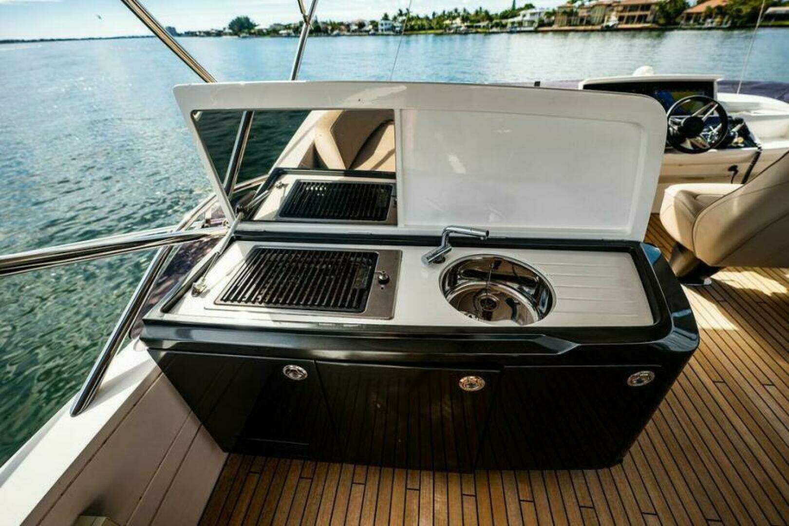 - Teak cockpit, Swim platform, Flybridge, Cockpit