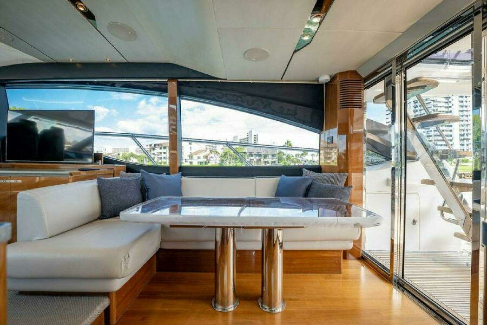 - Aft U-shaped lounge seating and sun pad