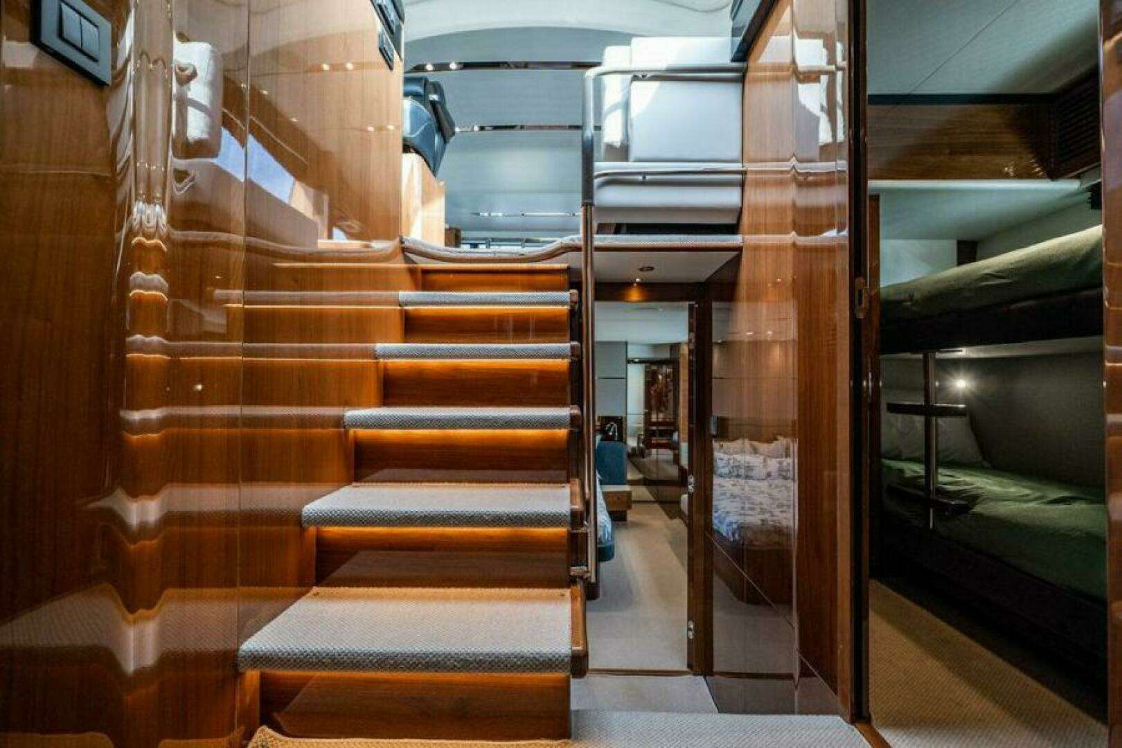 - Two single berths with power sliding conversion to double bed