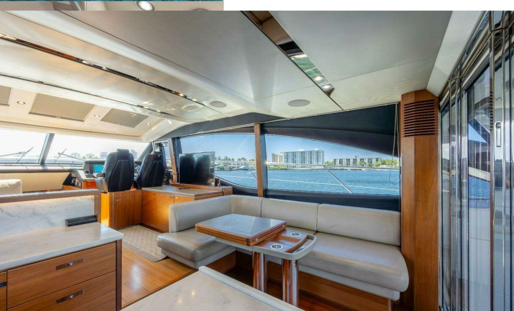 Princess craftsmanship is immediately evident in the S65’s bright, beautifully finished interior. The aft-galley layout creates seamless indoor/outdoor flow — ideal for entertaining. Large salon windows fill the space with natural light, while the electric sunroof brings open-air yachting into the salon at the touch of a button.