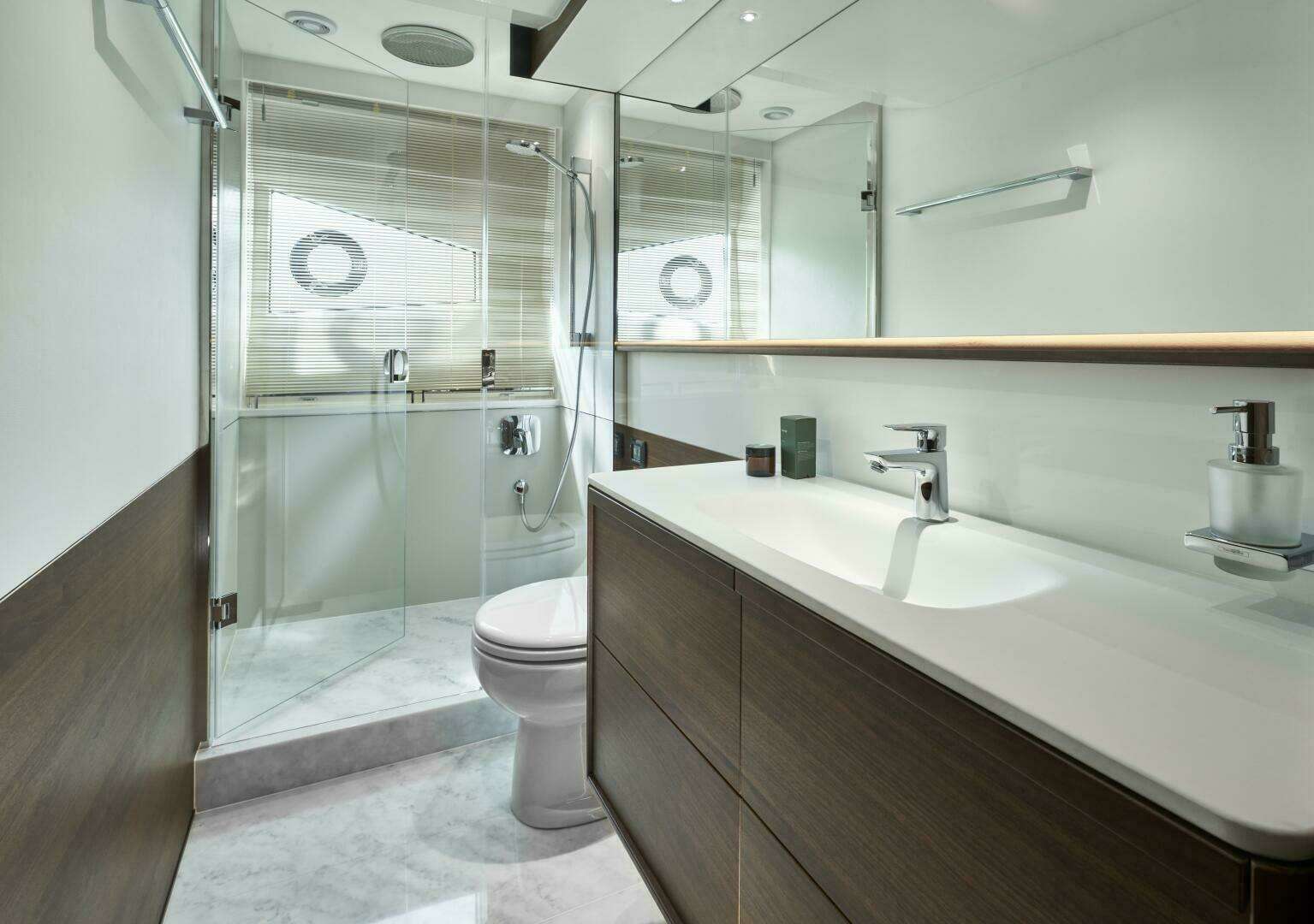 The all-new F65-079 boasts a contemporary use of layout featuring the latest geometric design elements. Focused around a sociable use of space, she provides accommodation for eight guests across four cabins. Vast panoramic saloon windows and signature wrap around front screens offer uninterrupted vistas from the main deck whilst elongated hull windows generously flood her accommodation areas with light.