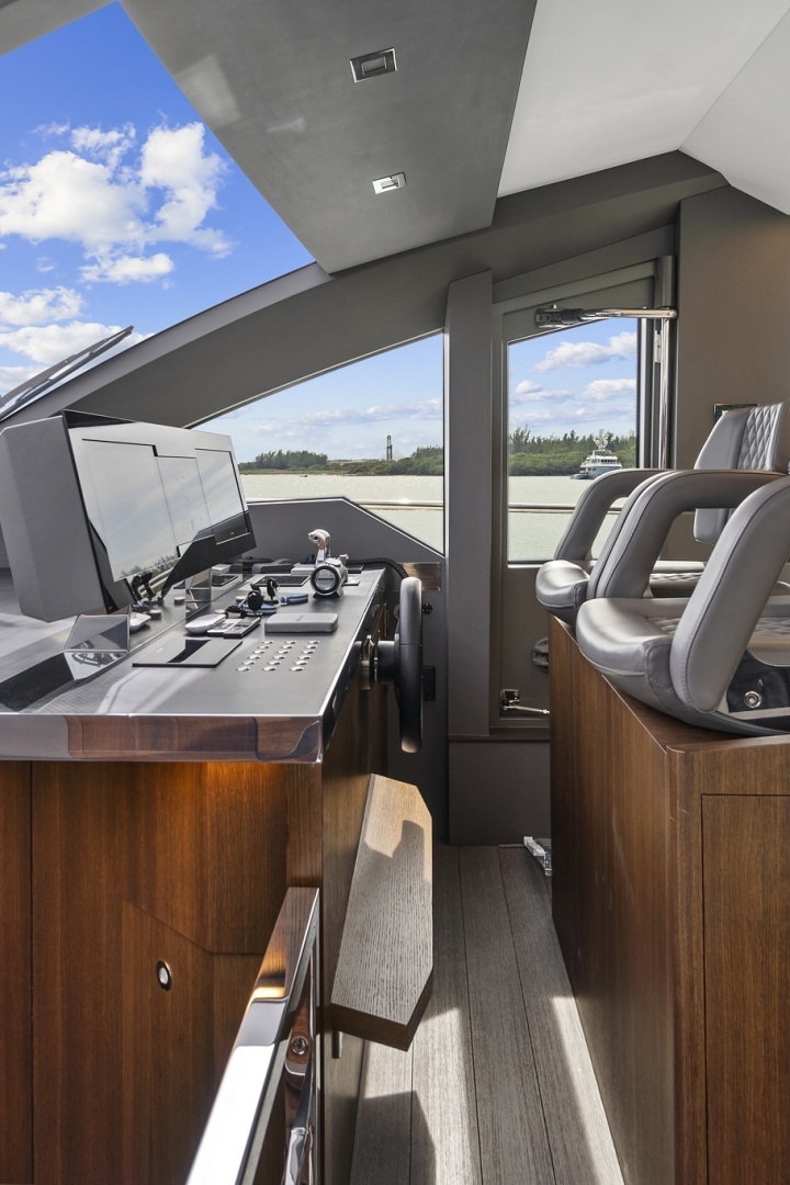 JESSEA delivers an exceptional yachting experience the moment you step aboard. Her sleek, modern lines are matched by an impressive galley that’s perfect for entertaining. The flybridge is the ultimate space to relax, thoughtfully designed with comfortable seating, a wet bar, grill, and all the