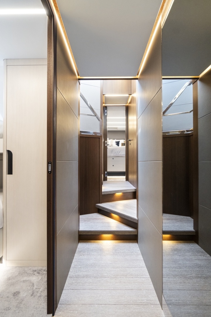 Built for both performance and luxury, San Pedro is powered by MAN V8 1200 engines and equipped with Seakeeper N9 gyro stabilization.